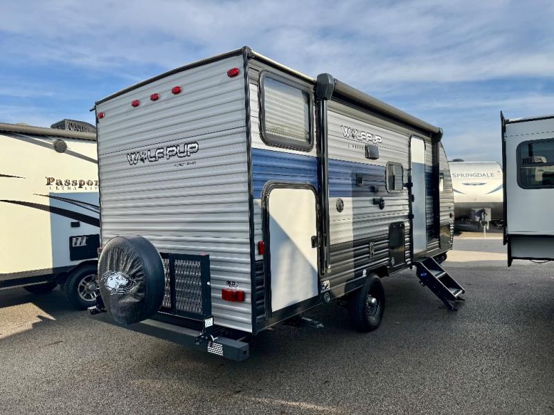 The Cherokee Wolf Pup travel trailer and toy hauler by Forest River are lightweight and easy to tow with ample storage for all your things. The aerodynamic radius front profile allows for better gas mileage, and the one-piece walkable decked roof allows you to easily clean off the unit after a fun weekend. You'll enjoy features such as USB charging stations to keep everyone's phones charged, a power awning with an LED light strip allowing you to stay outside longer, a seamless countertop, and an outside shower with hot and cold water to clean the dishes or even yourself, plus more! Pick the floorplan that works best for you, and start camping tomorrow!