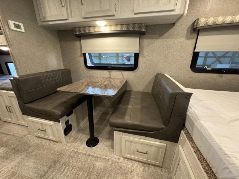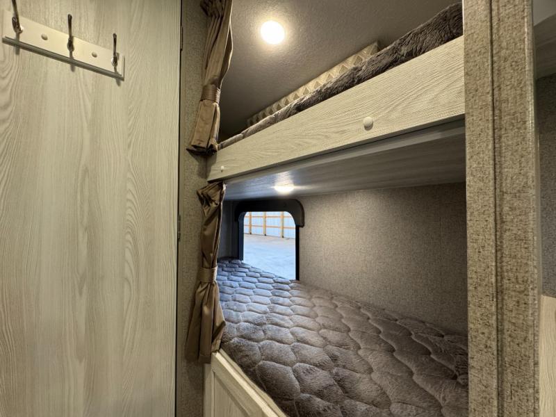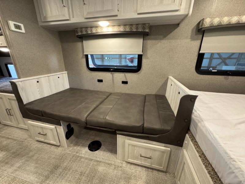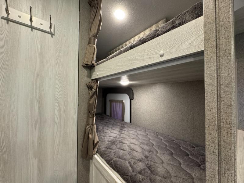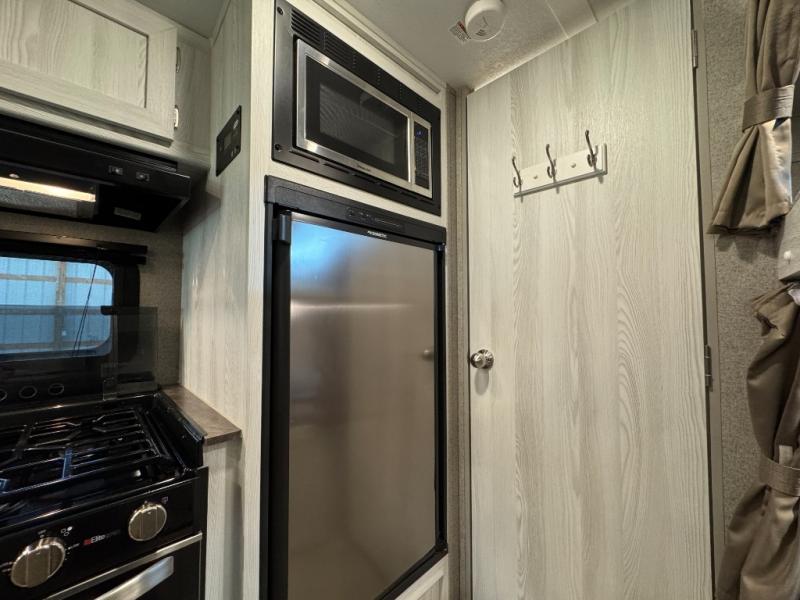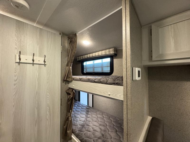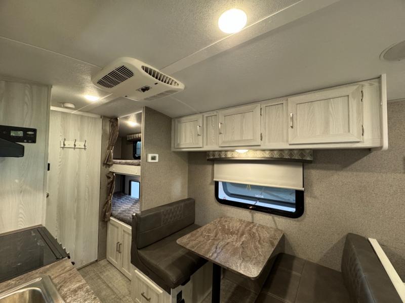 If you are looking for a compact unit that will allow you to bring along your friends or family, then this Flagstaff E-Pro travel trailer is the one! You will appreciate the set of bunk beds in the rear, the booth dinette, and the full-size bed up front which allow you to sleep five people each night. You will have a full kitchen inside to make warm meals and an outdoor gas griddle, so you can choose where you want to spend your meal prep. Because of the exterior bike door, you can bring along your bikes safely indoors allowing you to take a ride through the trails each afternoon, and there is exterior storage as well.