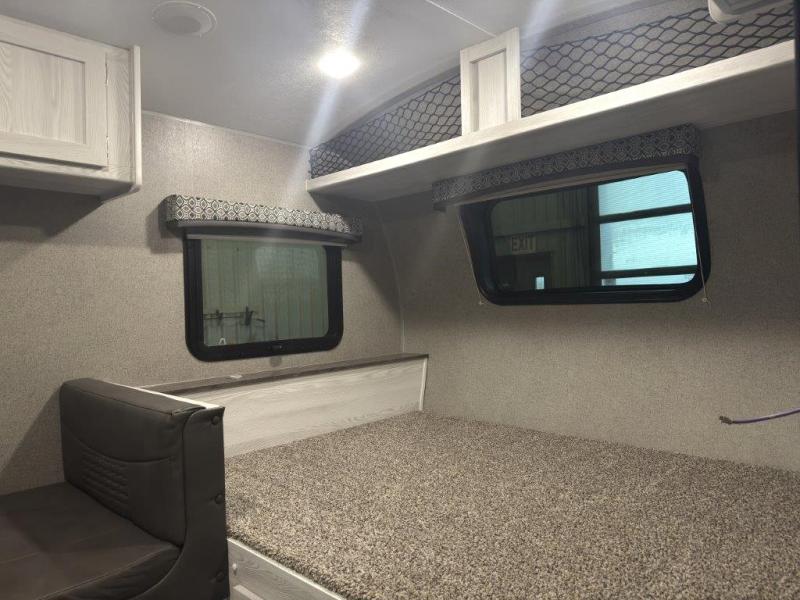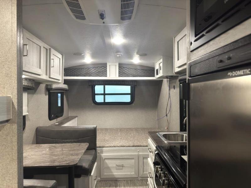 If you are looking for a compact unit that will allow you to bring along your friends or family, then this Flagstaff E-Pro travel trailer is the one! You will appreciate the set of bunk beds in the rear, the booth dinette, and the full-size bed up front which allow you to sleep five people each night. You will have a full kitchen inside to make warm meals. Because of the exterior bike door, you can bring along your bikes safely indoors allowing you to take a ride through the trails each afternoon, and there is exterior storage as well.