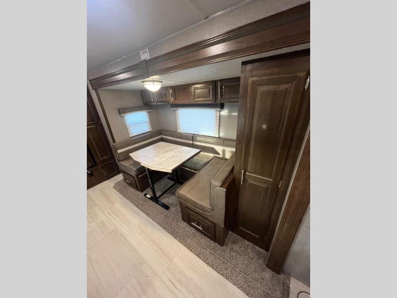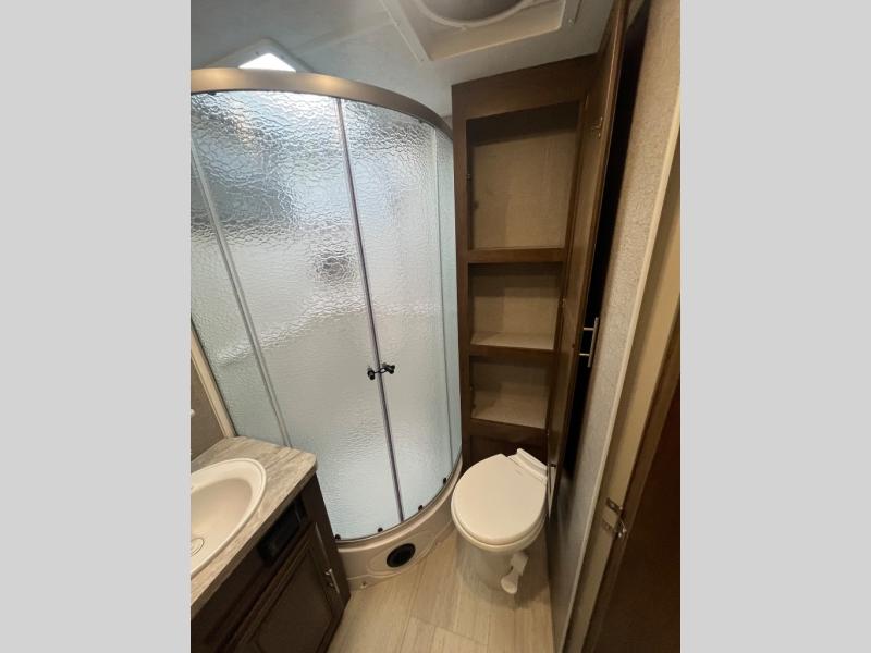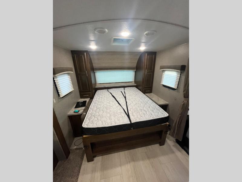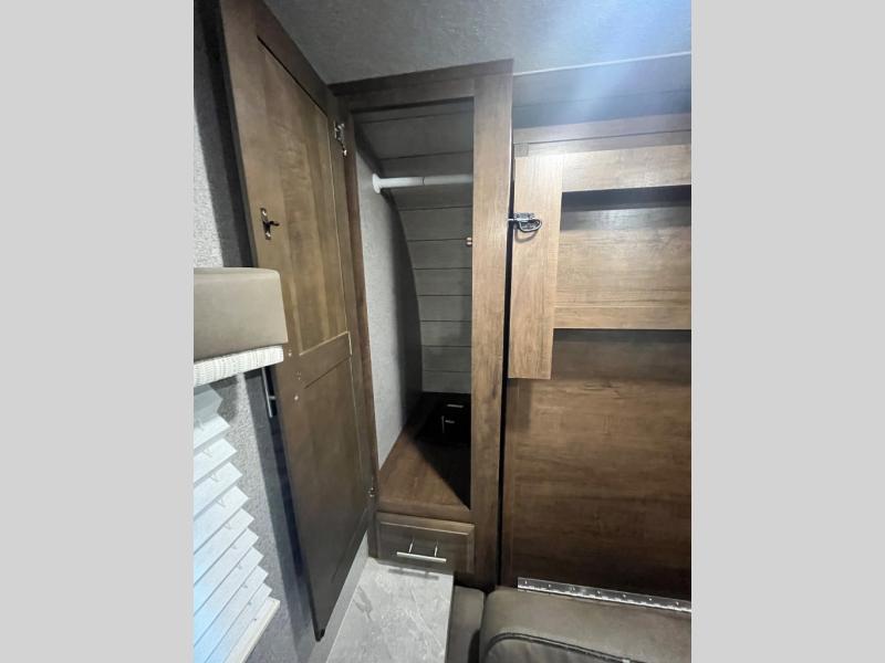For any camping trip, you will want a Flagstaff Micro Lite travel trailer! These models have a beautiful Slatewood interior with hardwood cabinet doors and drawer fronts. Each unit features a WIFI Ranger Booster Sky 4 so that you can stay connected while you camp. Along the exterior there is a fully aluminium frame, an enclosed underbelly, and a radius roof with interior vaulted ceilings which provides you with the most headroom. Plus, an outside shower, outside speakers, and power awning with LED lights give added convenience to the exterior.