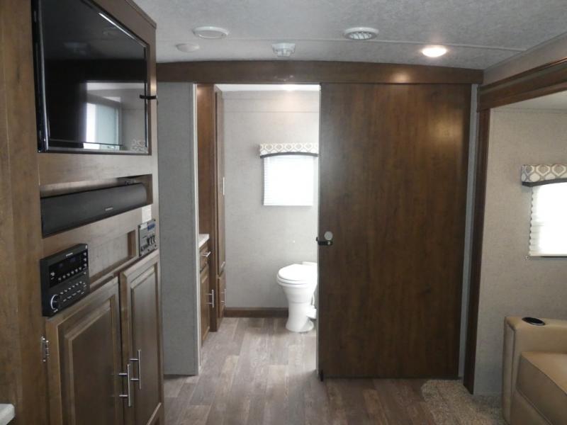 For any camping trip, you will want a Flagstaff Micro Lite travel trailer! These models have a beautiful Slatewood interior with hardwood cabinet doors and drawer fronts. Each unit features a WIFI Ranger Booster Sky 4 so that you can stay connected while you camp. Along the exterior there is a fully aluminium frame, an enclosed underbelly, and a radius roof with interior vaulted ceilings which provides you with the most headroom. Plus, an outside shower, outside speakers, and power awning with LED lights give added convenience to the exterior.
