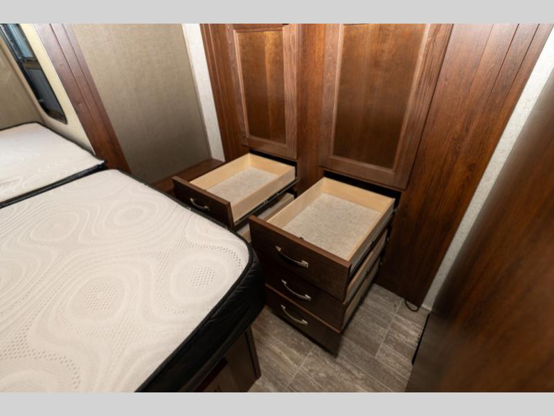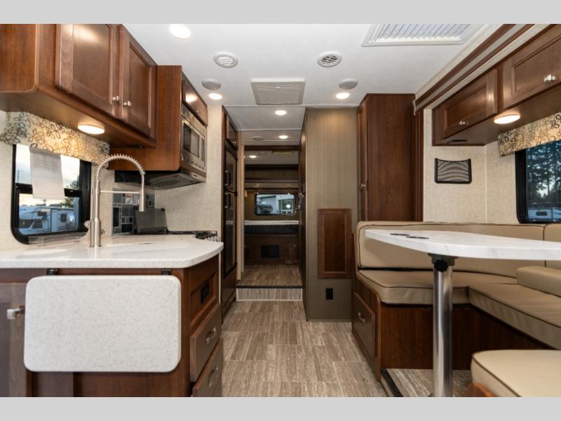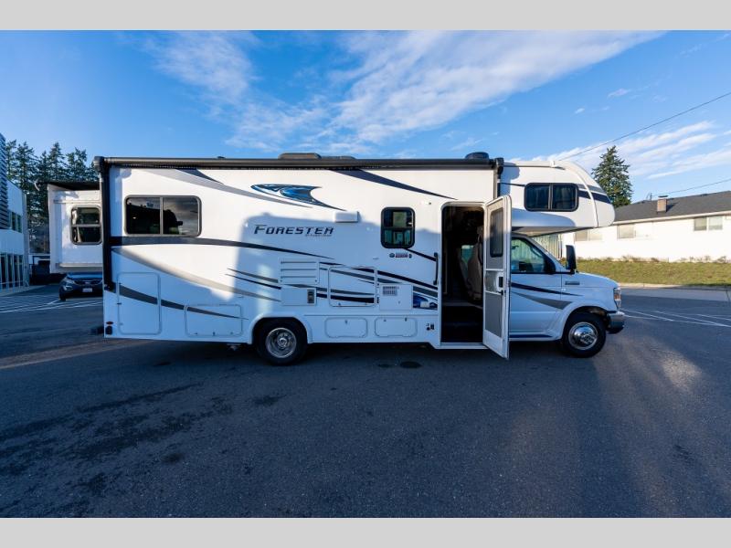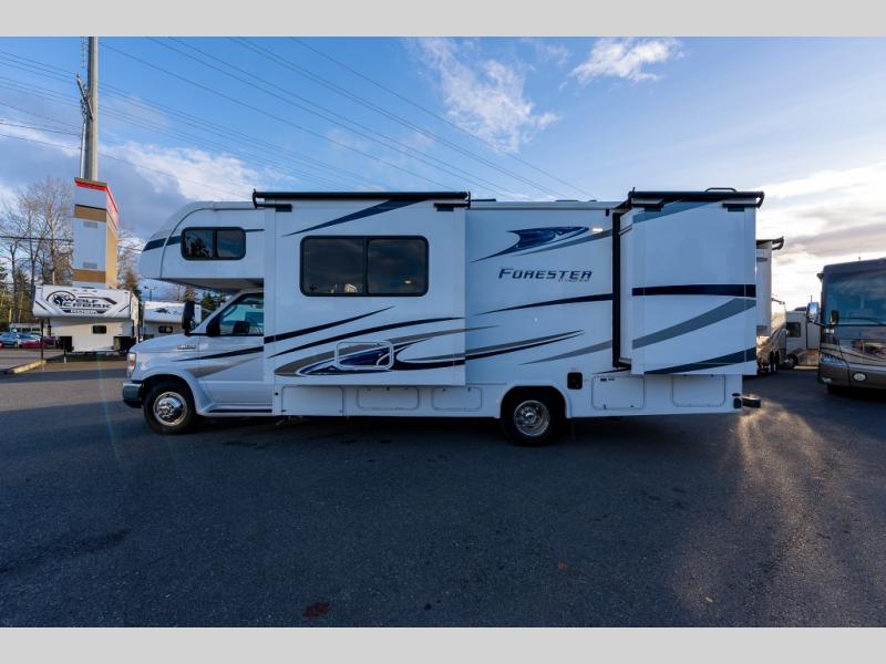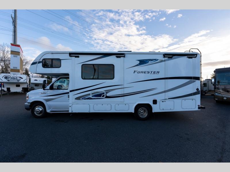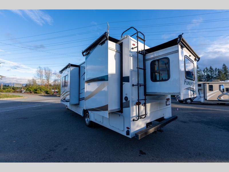 These Forest River Forester motorhome Class C motorhomes are what you should be looking at if you want tasteful style and design. The outside shower allows you to rinse off the mud before tracking it inside and the ONEcontrol smart phone remote monitor system gives you the convenience of checking on things right from your phone. The side view and back-up cameras will come in handy when parking your RV into your campsite. The inside of these motorhomes also have some beautiful colors to choose from that will make you feel like you are at home. You will enjoy whipping up your best meals with all of the stainless steel appliances, solid countertops, and even a microwave oven. Plus, all of the Foresters are "Certified Green" by TRA Certification.