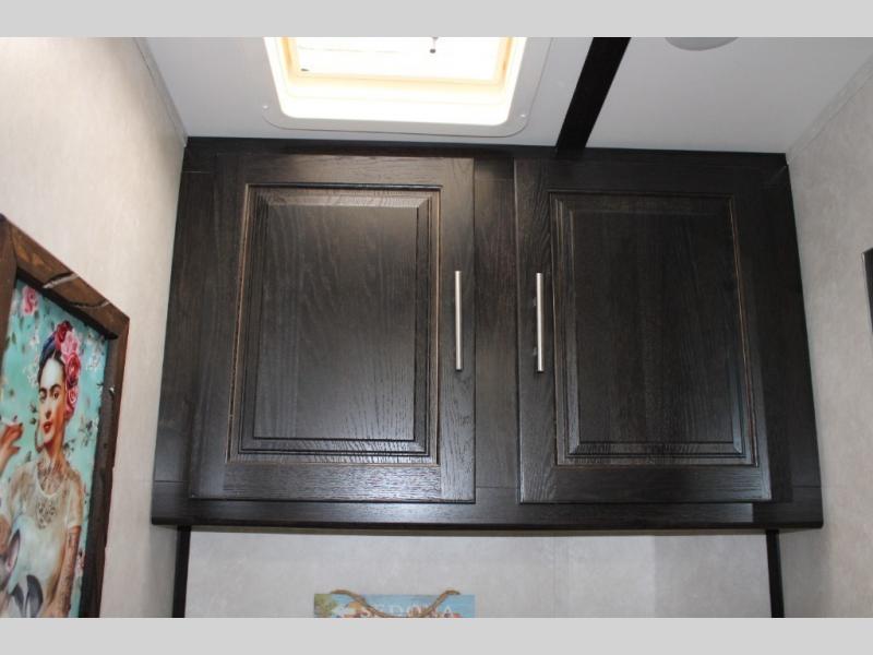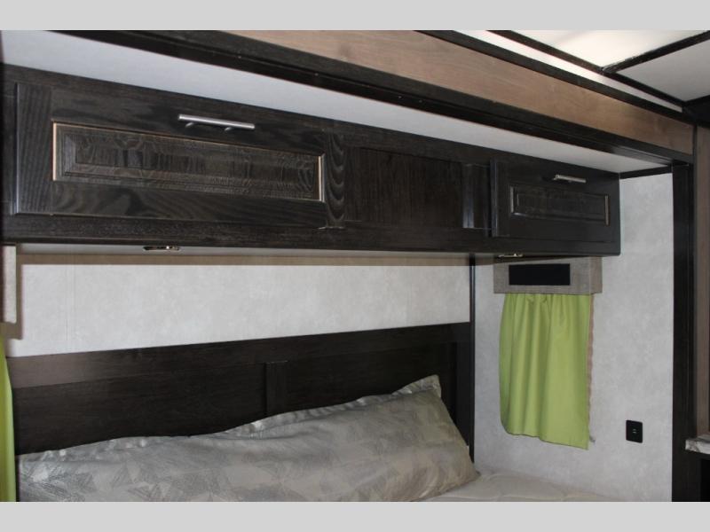 Power overhead bunk with ladder makes use of every inch, offering bonus sleeping for the grandkids or friends