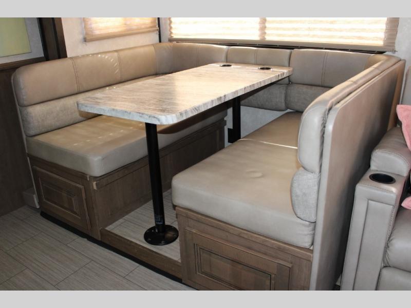Wrap-around booth dinette is the perfect place for meals, game night, or converting into even more sleeping space