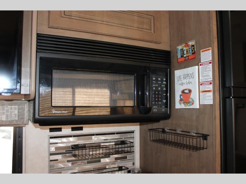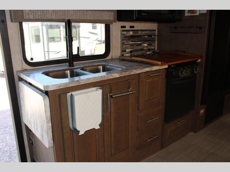 Custom countertops and a well-equipped kitchen help bring the comforts of home on the road