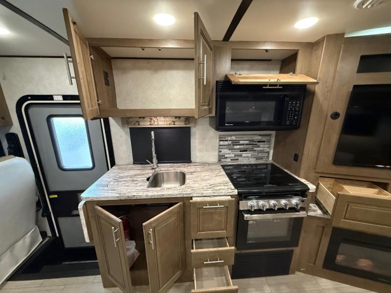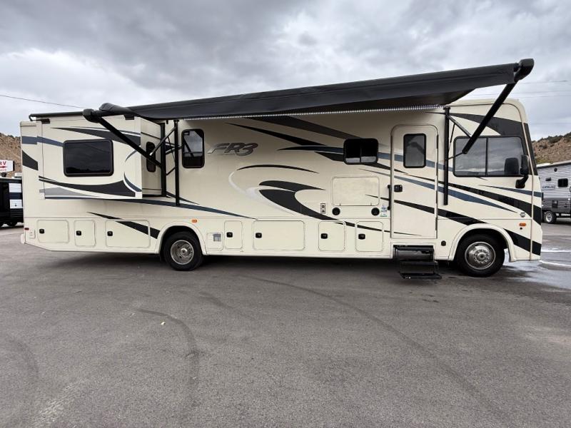Each FR3 Class A gas crossover motorhome by Forest River offers features such as a power fold-away overhead bunk with a ladder, Shaw residential vinyl flooring, custom countertops, plus so much more. You'll appreciate the "Super Storage" pass-through cargo compartment in the rear for your outdoor gear such as camping chairs, tables, and cookware, plus a KING Jack digital TV antenna with built-in signal meter. Inside, there is LED lighting throughout, a 12V charging station, and USB charging stations to keep all the electronics ready to go. Don't just choose a motorhome, choose the FR3 crossover by Forest River to take you places!