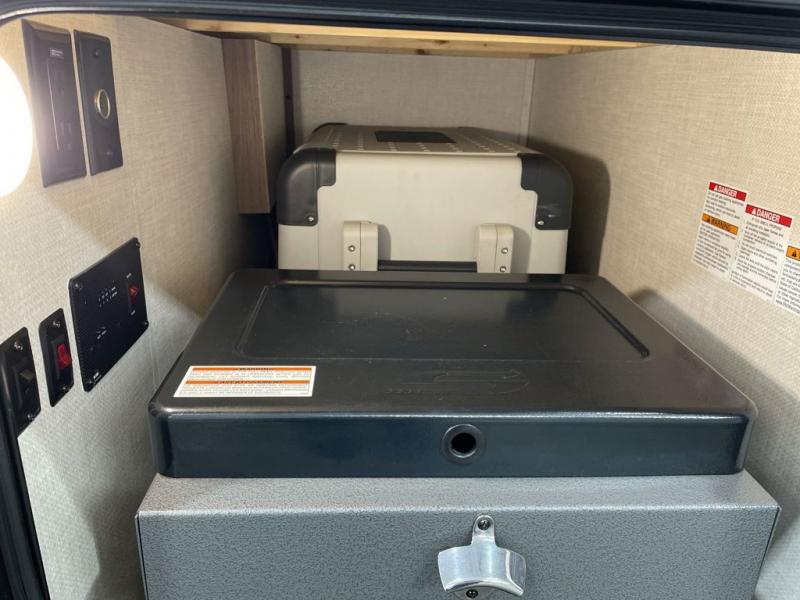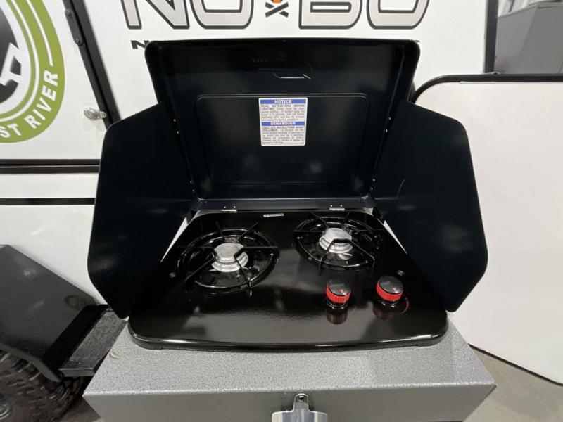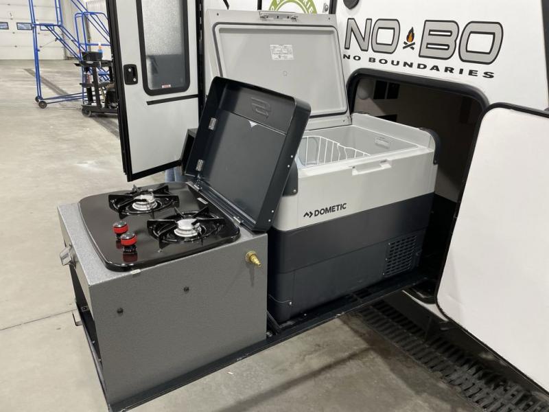 When versatility is what you need, choose this No Boundaries travel trailer toy hauler for your new basecamp when out exploring on your ATV or dirt bikes. Model NB10.6 provides a rear ramp door so you can easily load and unload all of your gear and toys. Coming in just under 2,000 lbs. you will easily be able to tow it with your mid-sized SUV or small truck. There is plenty of storage space throughout, plus an outdoor slide out cook-top and cooler so you can enjoy a warm meal. There is also a 60" x 82" lounger in back for two to sleep comfortable inside. LED lighting, both inside and out, makes any task easy to accomplish even after dark. Add the optional TV for your inside enjoyment, plus so much more!