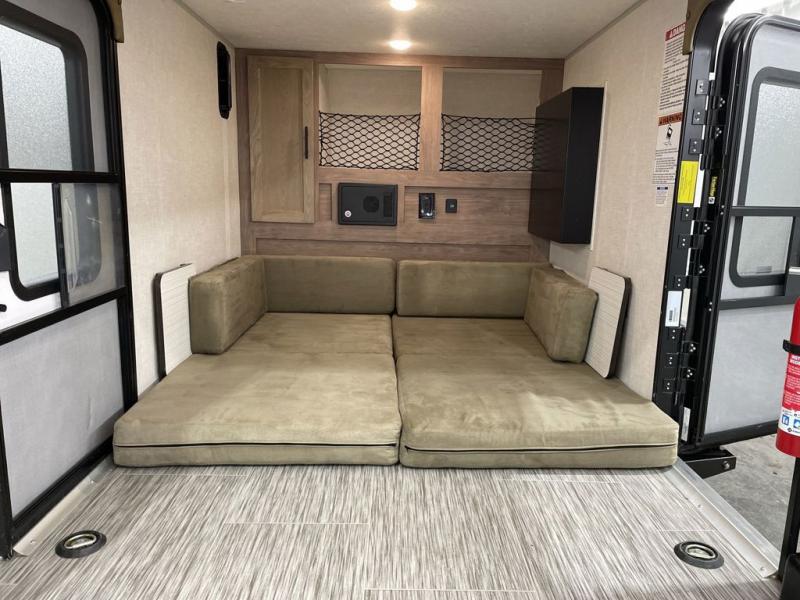 No matter what dream or adventure you happen to be chasing, a Forest River No Boundaries model will help you get there. All units feature industry leading ground clearance along with larger diameter tires and a nimble suspension system which makes it easy for you to go a little further off the beaten path. These units are offered in a variety of layouts and provide loads of adaptable storage for equipment and gear like kayaks, bicycles, fishing gear, surf boards, and so much more! They can also be easily towed by most four or six cylinder vehicles with models ranging in weight from 2,000 on up to 5,000 lbs. When your adventures push the limits, choose a Forest River No Boundaries travel trailer or toy hauler!