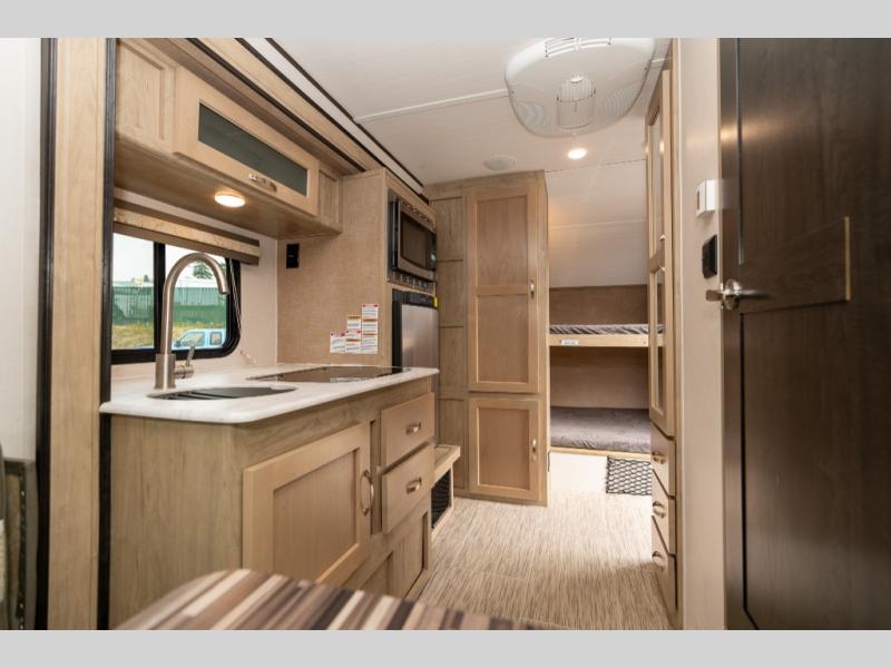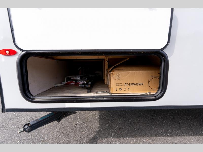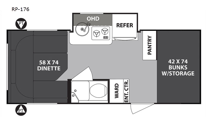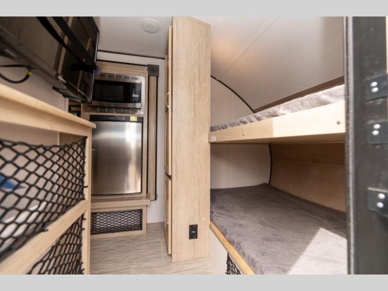 Whether you are headed out to a nearby campground or on a more extravagant excursion, this R-Pod travel trailer is ideal for you! After you set up camp, then come enjoy the spacious interior. This unit has a three-way refrigerator and a two-burner cooktop to make a family meal. Sleeping space can be found on the bunk beds, plus the U-shaped dinette converts into additional sleeping space, if needed. With an entertainment center in this model, bring along a TV for movie nights! This travel trailer also has a pass-through storage for any large items you want to bring along!