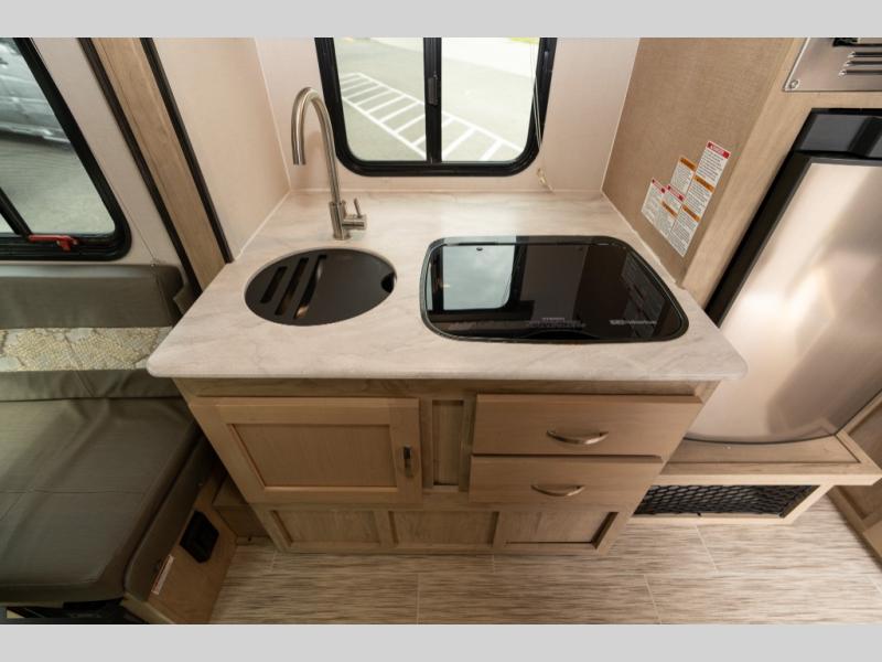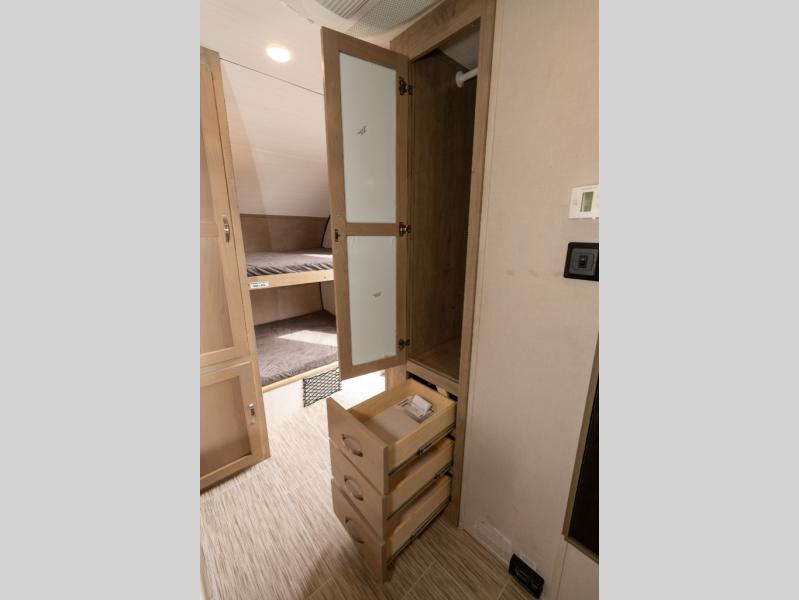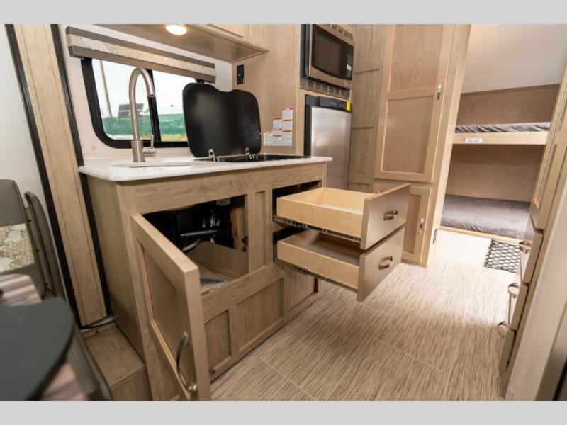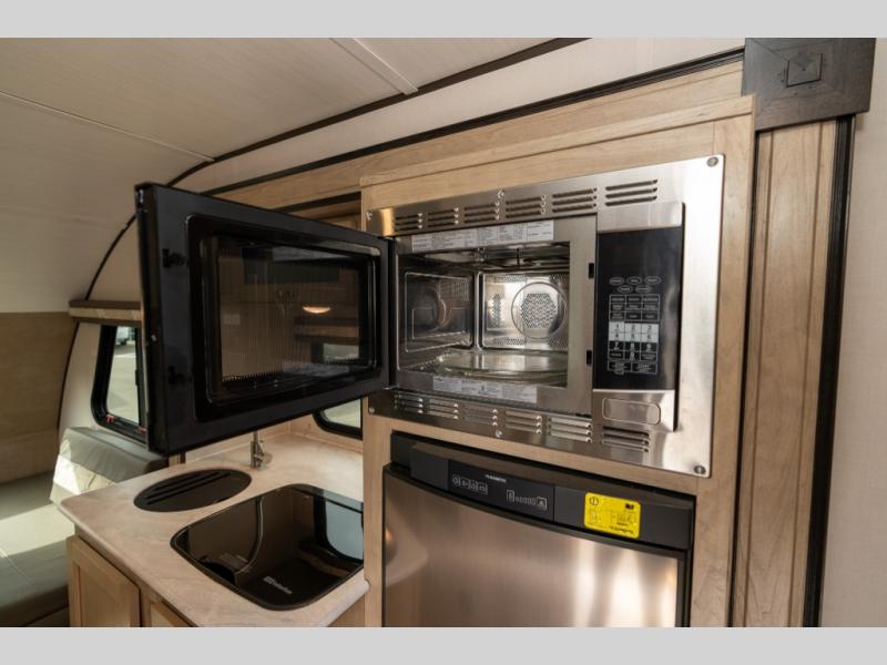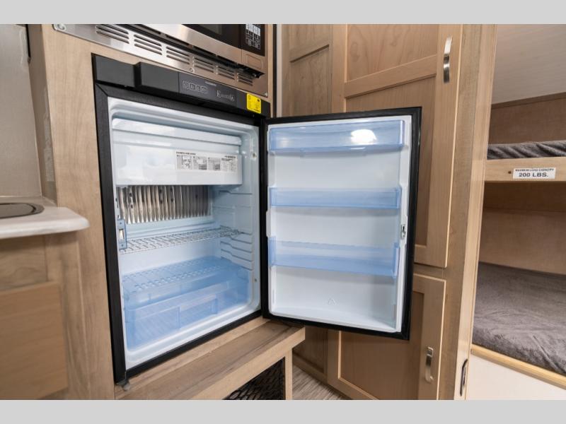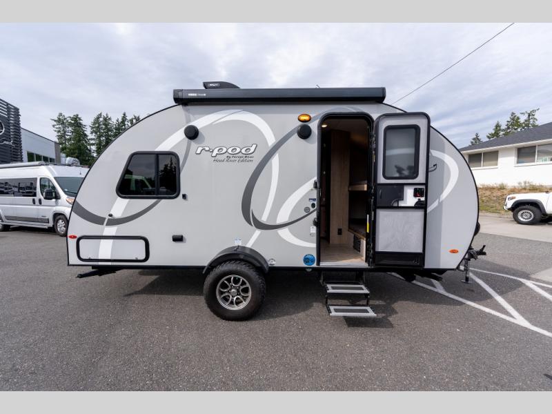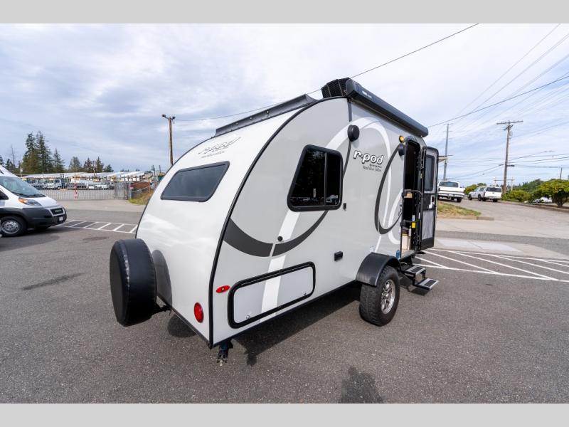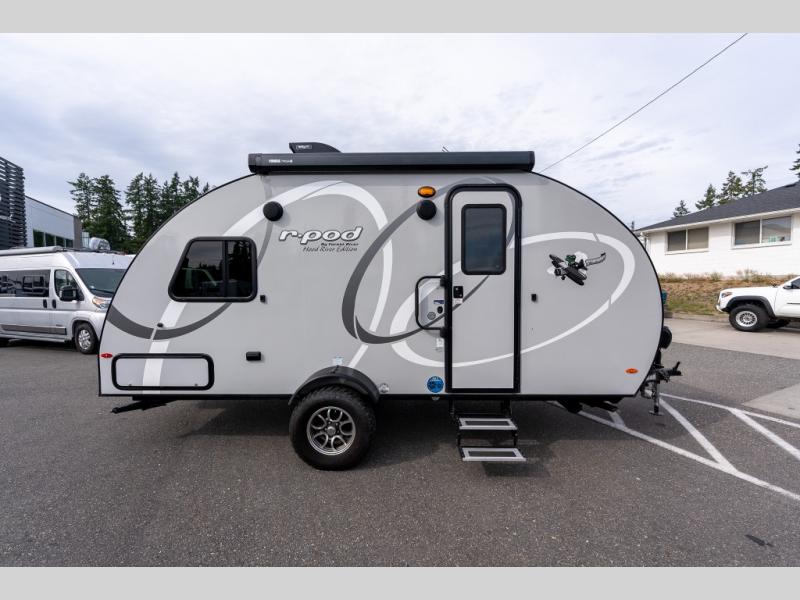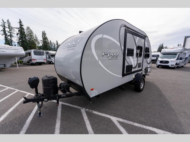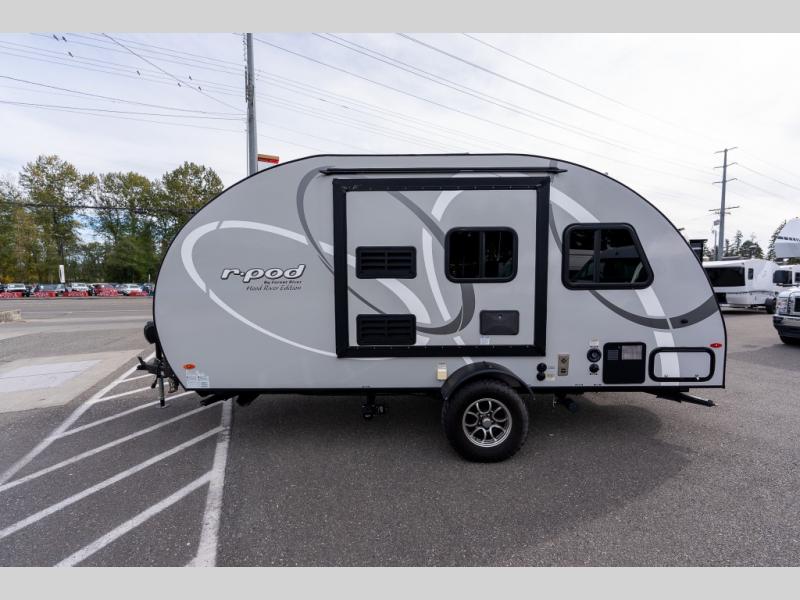 For a sturdy one-of-a-kind travel trailer, choose the R-Pod by Forest River. Along the exterior, you will find a powder-coated steel frame, custom tinted safety glass windows, and convenient magnet baggage-door catches. Inside of each model, you will enjoy Designer Carefree flooring, hardwood drawer fronts with full-extension ball bearing drawer glides, plus decorative window treatments to give you an at-home feel. With safety features like the breakaway switch, the LP, smoke, and CO detectors, plus a fire extinguisher, you can be sure that you will be safe for years to come. These units are ready to go when you are, so come select your R-Pod today!