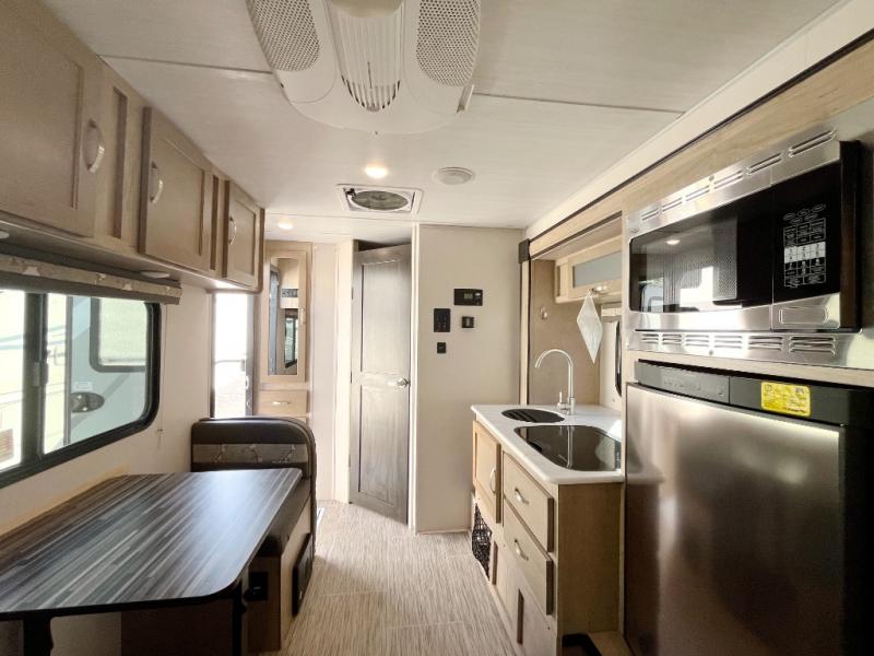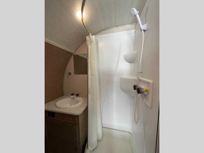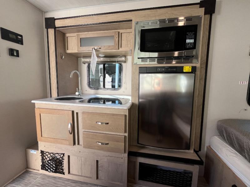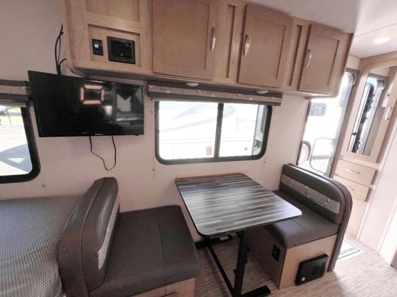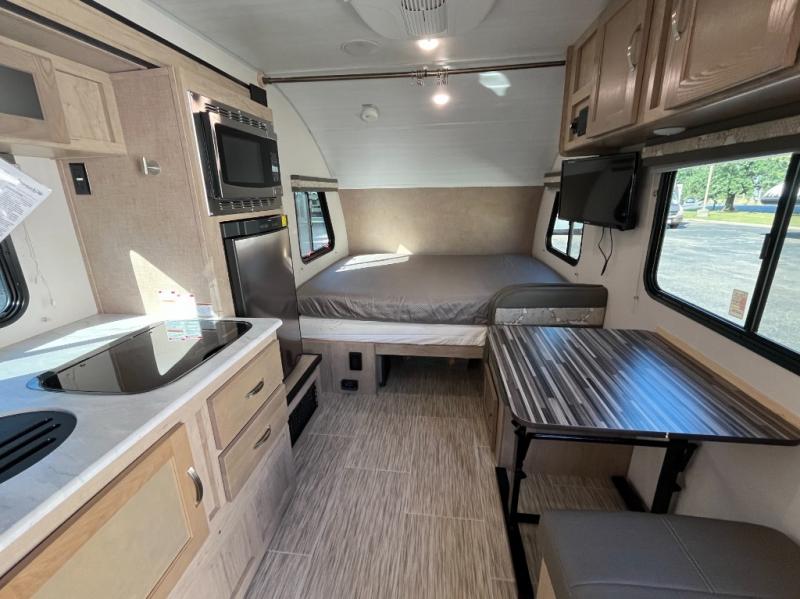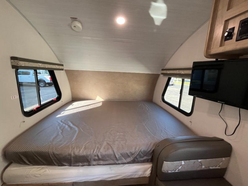 Get ready to travel just about anywhere with this lightweight R-Pod travel trailer! This model is ideal for any couple. There is sleeping space on the front RV queen bed, and the 24" x 75" booth dinette can easily convert into a sleeping spot for a child. The slide out helps open up the floor space, plus you will find all of the kitchen amenities here. The spacious full bath has plenty of room to easily get ready for any adventure that lies ahead. You will also enjoy all of the exterior storage for all of your outdoor camping gear. This unit even includes an LED TV for movie nights!