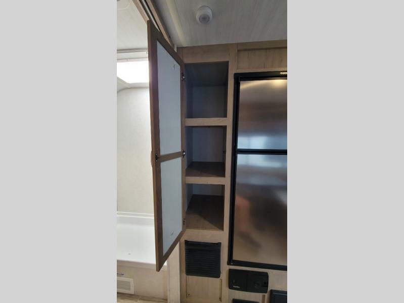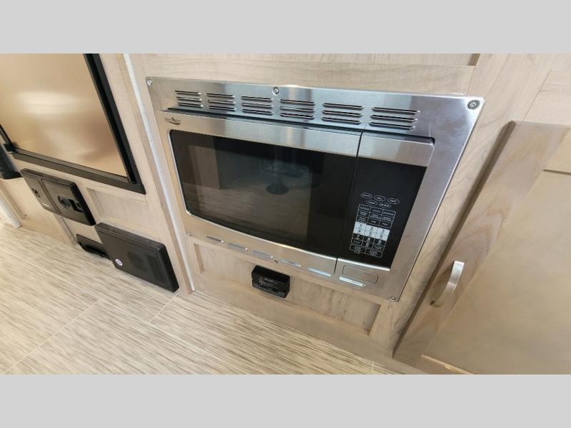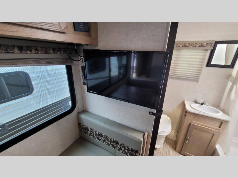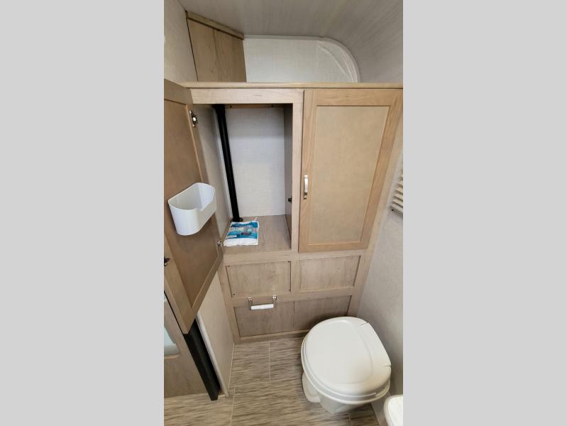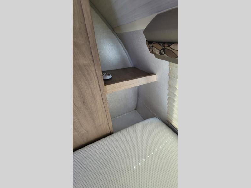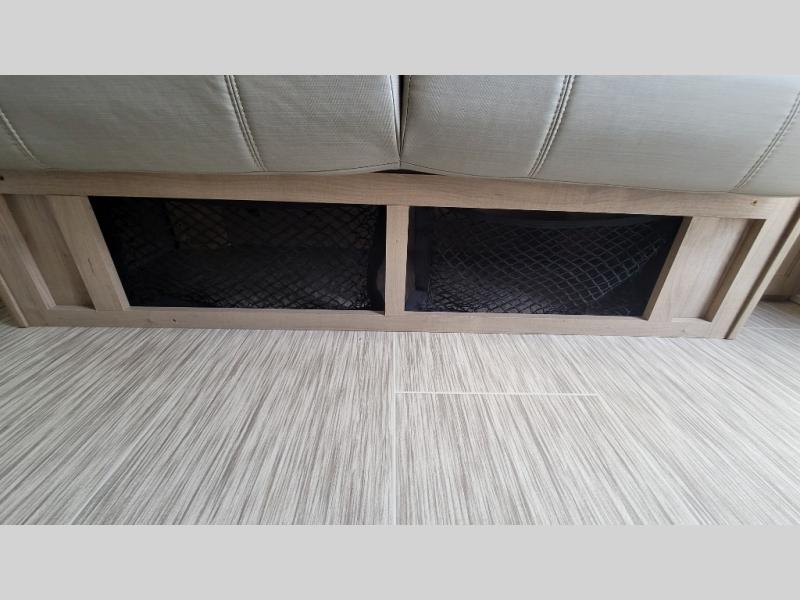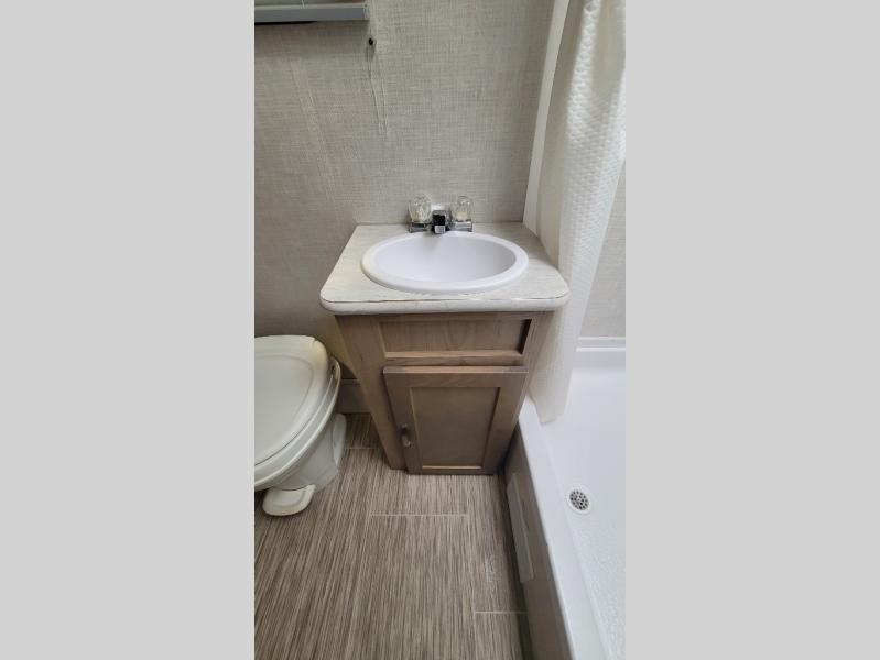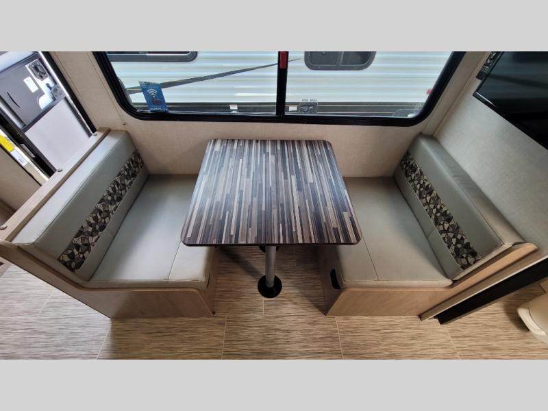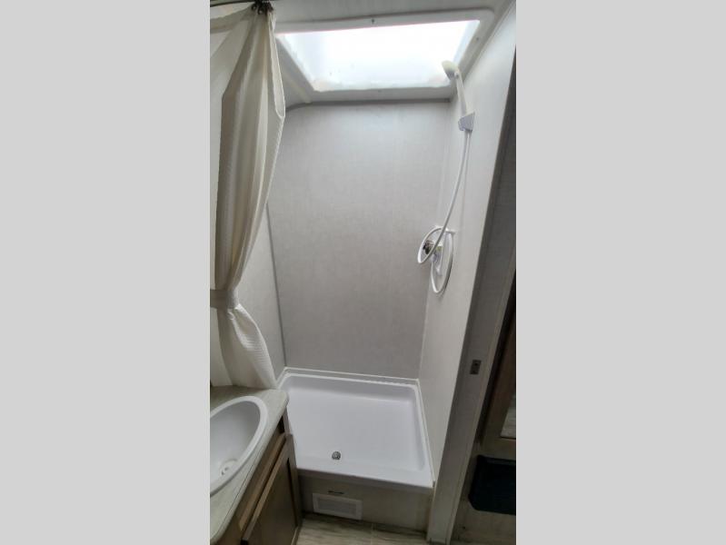 You're going to love all of the conveniences and versatility of this R-Pod travel trailer! The front Murphy bed folds away to reveal the sofa which gives you a comfortable place to sit during the day and to sleep at night too. The rear full bath features everything you will need to get squeaky clean each morning as well as a large wardrobe for you to store your linens. After you have whipped up your best meal with the two-burner cooktop, you can head to the 30" x 75" booth dinette and enjoy eating it there comfortably. There is plenty of storage space inside, but if you need more space, then you can use the exterior pass-through storage!