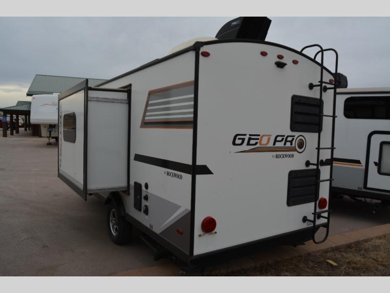 The Forest River Rockwood Geo Pro travel trailer is built to be towed by most "crossover" vehicles and smaller SUVs. Each model is built with six-sided aluminum cage construction, a torsion axle, Rubber-Ryde suspension, and includes a WiFi Ranger WiFi Booster, a power tongue jack, a Water-Pur filtration system, plus more depending on the model you choose. You will also appreciate the outdoor speaker for listening to the AM/FM stereo with Bluetooth and USB as you enjoy the outdoors. Choose your Geo Pro today!