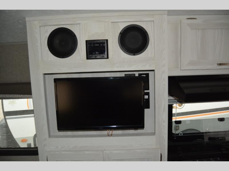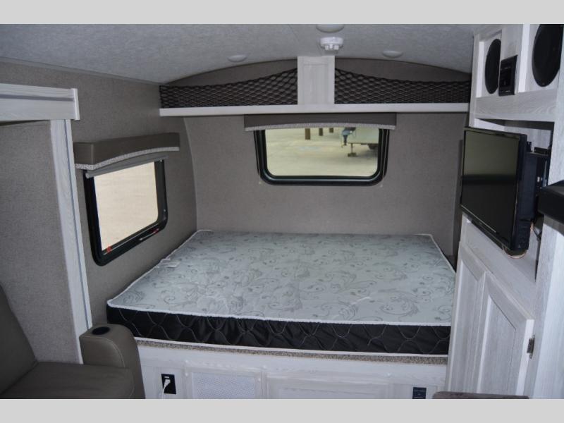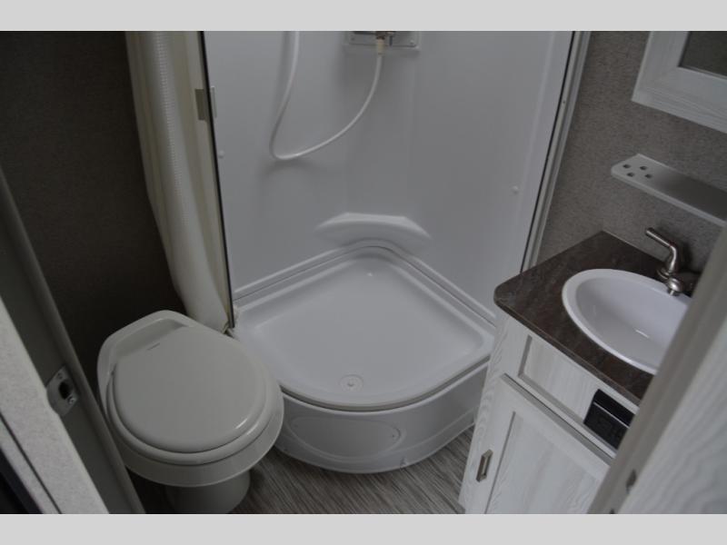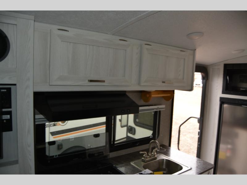 Come see just how fun and easy camping can be with this single slide sofa with cupholders and a table giving you more floor space between the front and the rear of the trailer to move about without having to squeeze in. The rear corner full bathroom is across from the entry allowing you quick access inside and back outside so that you don't have to miss anything. You can make meals in the kitchen area or outside on the gas griddle, watch the 12V TV, and sleep on the queen-size bed up front with overhead storage. You even have a handy exterior ladder on the rear if you need to check the top of the trailer sometime.