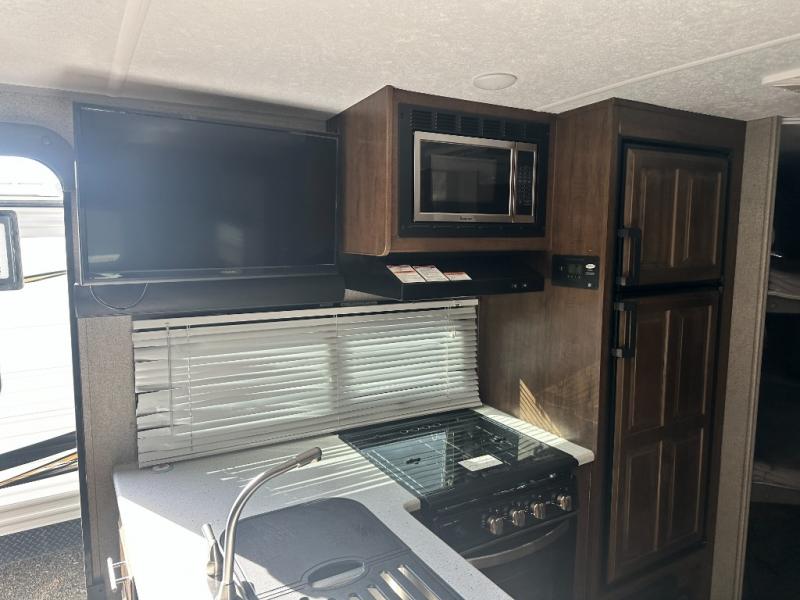 What I liked most: After a lot of searching, we finally found a trailer that "checked all of the boxes". Bunk house, lots of kitchen space (including outside!), a bathroom that larger than a coffin, and a huge awning. The bed is very comfortable...we've even used the heated mattress on a cold Wisconsin morning. All of this, and still under 5500 lbs. When you're inside you can't imagine that it's an easy to tow less than 26 feet long!