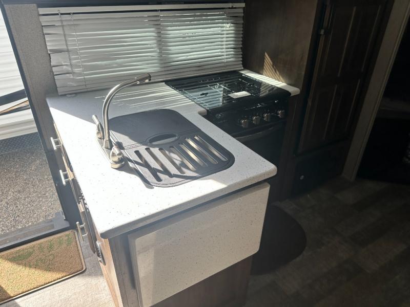 See just how fun and convenient camping can be in this single-slide Rockwood Mini Lite travel trailer by Forest River. You will love the double-size bunks and the exterior pull-out grill to grill up your best burger. If the weather doesn't allow you to use the grill, you can still easily whip up your best meal at the indoor kitchen, and the countertop extension is the perfect place to serve your meal. With the Murphy bed, you can enjoy a good night's rest as well as transform it into a sofa for extra seating during the day. You will also love the added convenience and privacy with the rear bath next to the bunks. Whatever you choose to do with your friends or family, it is sure to be a good time in this travel trailer!