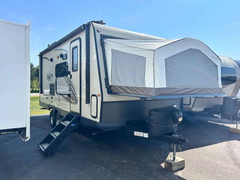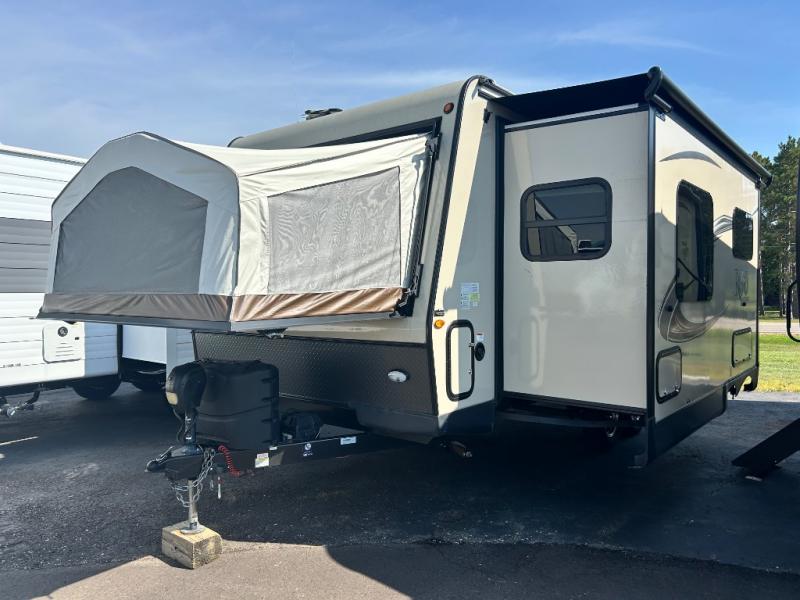 For an expandable with the perfect balance of comfort and convenience, choose the Forest River Rockwood Roo campers. Each model includes solid surface kitchen countertops, a multi zone stereo with DVD/CD/AM/FM and Bluetooth control, a double door auto gas/electric refrigerator, plus a bathroom skylight just to name a few at-home comforts. You can enjoy your time outdoors with a power awning with LED lights and the outside speakers will make your campsite the life of the party. These models are constructed with a fully aluminum frame and a radiant foil insulated underbelly, allowing you to extend your camping season with ease.