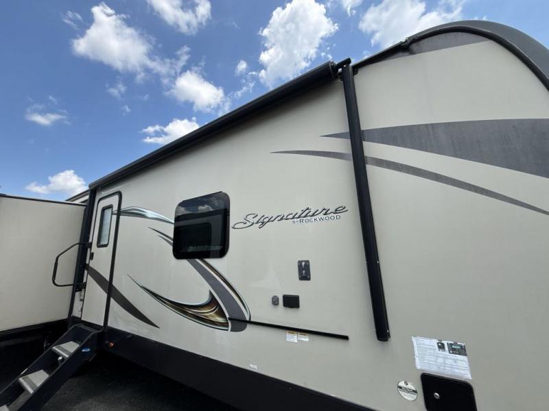 The Forest River Rockwood Signature Ultra Lite travel trailers are anything but ordinary. You will love all the space inside each model, with each including three slides or more. Once you step inside you will find beautiful Slatewood interior, solid wood cabinet doors and drawers, plus LED lighting throughout. Outside, there is a power awning with an adjustable rain dump plus LED lights, and a seamless one piece roof. Each model also includes a Standard Package which features a high gloss front cap, an upgraded 22" gas oven, solid surface kitchen countertops, outside speakers, and so much more!