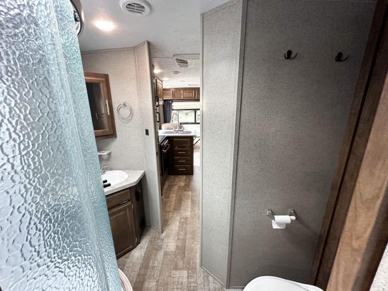 The search is over! This Forest River Rockwood Ultra Lite 2604WS travel trailer offers double entry doors for a smooth flow of traffic in and out of the unit. There are plenty of overhead cabinets throughout the trailer to hold your camping necessities as well as a drop frame pass-through storage to easily access and store your outdoor gear, plus additional exterior storage. While you are whipping up your best meal in the kitchen, you can socialize with the rest of your group as they sit comfortably in either one of the two swivel rockers with tables on either side or on the 67" hide-a-bed sofa. You will also enjoy serving your meal on the countertop extension and enjoying it at the booth dinette. By having the walk-through bath, it allows everyone to have an easy access, especially if you are staying in the front private bedroom.