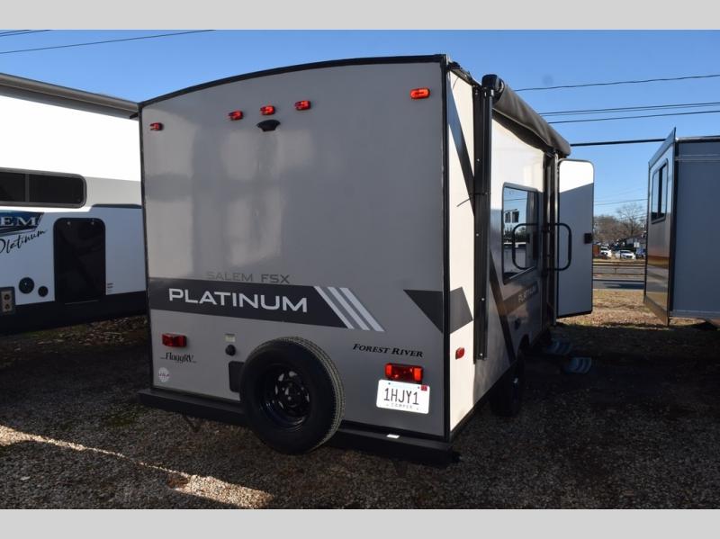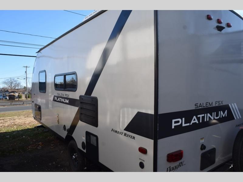 Each platinum edition single axle Salem FSX travel trailer by Forest River provides a smooth fiberglass exterior, a .040 smooth front metal, a patio deck with a railing system on the ramp door, and has been prepped for a backup camera. Plus, a platinum graphics package and upgraded steel wheels. Inside, the linoleum flooring provides an easy to clean floor, the largest-in-class opening windows let in plenty of sunlight, and the high rise kitchen faucet makes cleaning up a breeze. Choose your favorite model today to enjoy modern living space and conveniences throughout!
