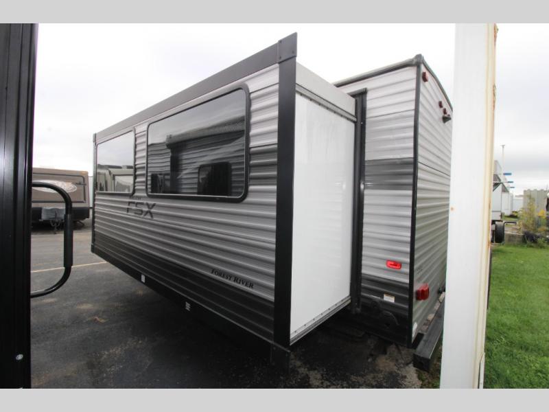 Each single axle Salem FSX travel trailer by Forest River provides an upgraded TUFFCOAT aluminum exterior, fully insulated sidewalls and roof, a patio deck with a railing system on the ramp door, and has been prepped for a backup camera. Inside, the linoleum flooring provides an easy to clean floor, the largest-in-class opening windows let in plenty of sunlight, and the high rise kitchen faucet makes cleaning up a breeze. Choose your favorite model today to enjoy modern living space and conveniences throughout!