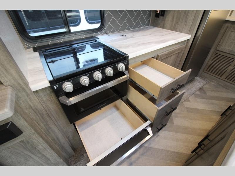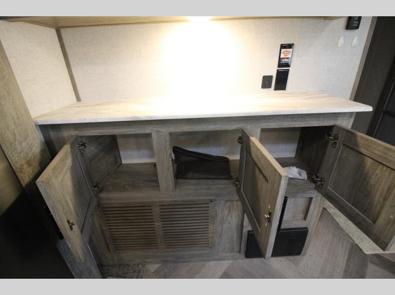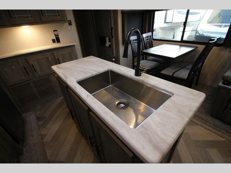 These Salem Hemisphere fifth wheel and travel trailers by Forest River are built to give you years of enjoyment out in the great outdoors! The vacuum bonded aluma frame sidewalls and floors, the heated and enclosed underbelly and dump valve, and the wide stance axle system help accomplish that. There is even an upgraded insulation package and a high efficiency AC cooling system for you to travel anytime of the year. The shaded pet tether and security hook allows you to bring your pets along too and know they will stay safe. A few other construction features you will love are the 7-way "rain defense" plug holder in the front frame, the extra large pass-through storage, and the designer's choice Herringbone shaw flooring to make clean ups a breeze!