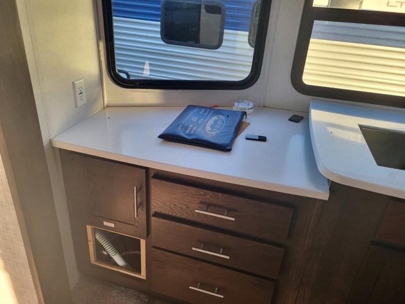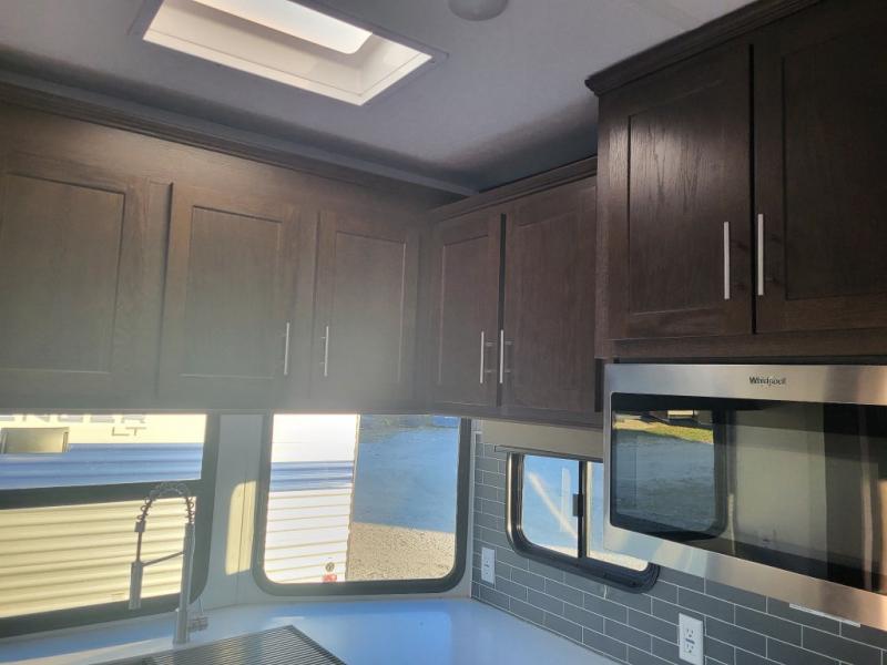 The chef will love having a front kitchen with lots of windows, and the large slide out offers even more windows in the main living and kitchen area providing natural lighting and great views of your favorite place! The stainless steel appliances offer style just like the flooring, and the comfortable furniture allows you to escape from your worries. You can dine, work and play games from the free standing dinette while others relax on the sofa or in the recliner. The fireplace and two ceiling fans offer additional ways to stay cool and warm when you don't want to run the air conditioner or furnace. And don't worry about a restful night's sleep when you have your own king-size bed slide out. There is so much more to enjoy, take a look!