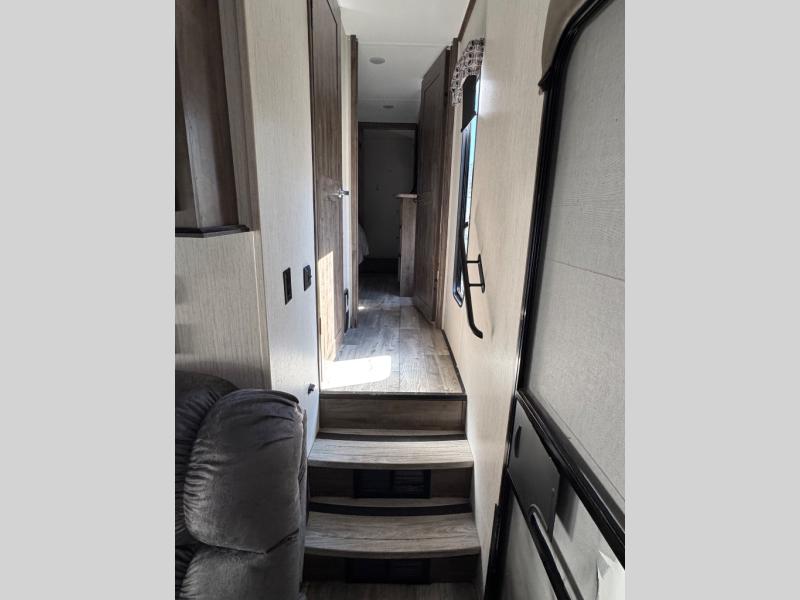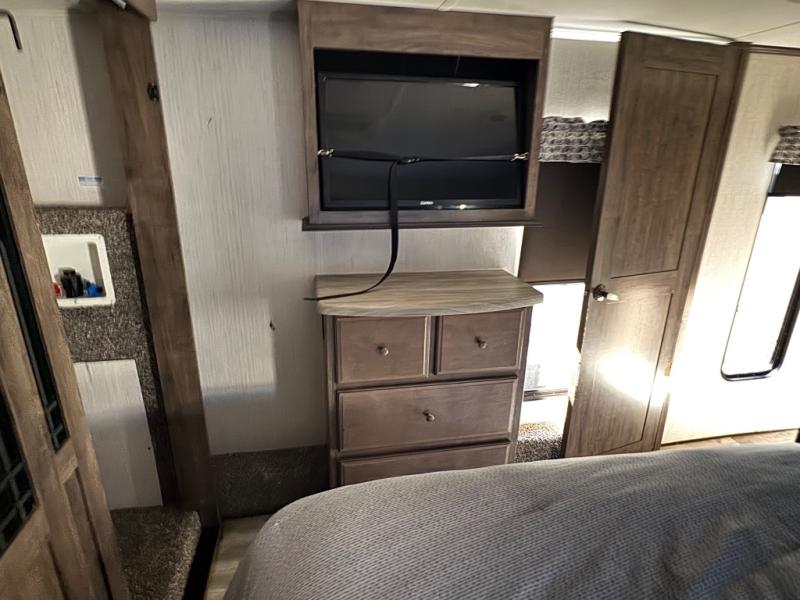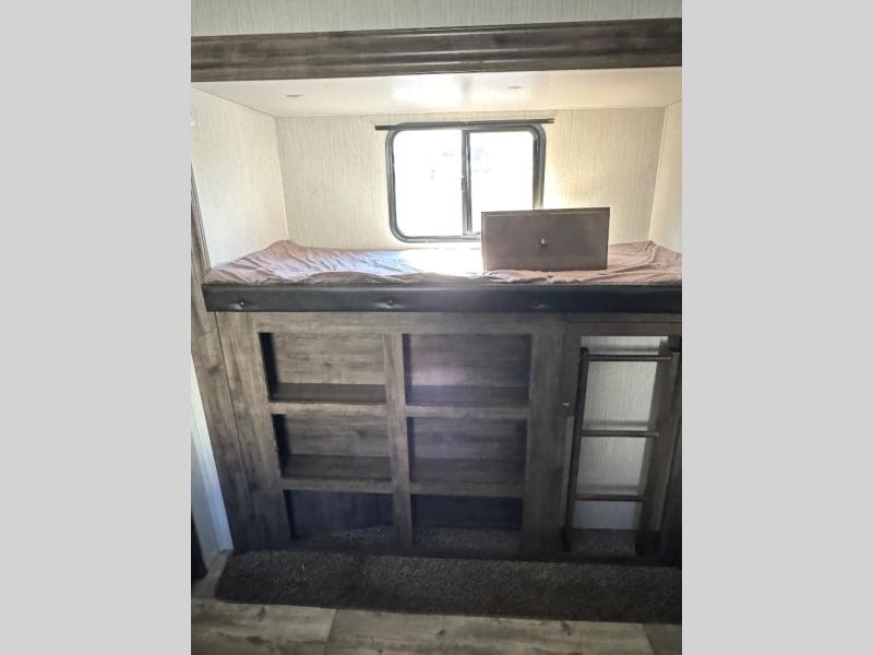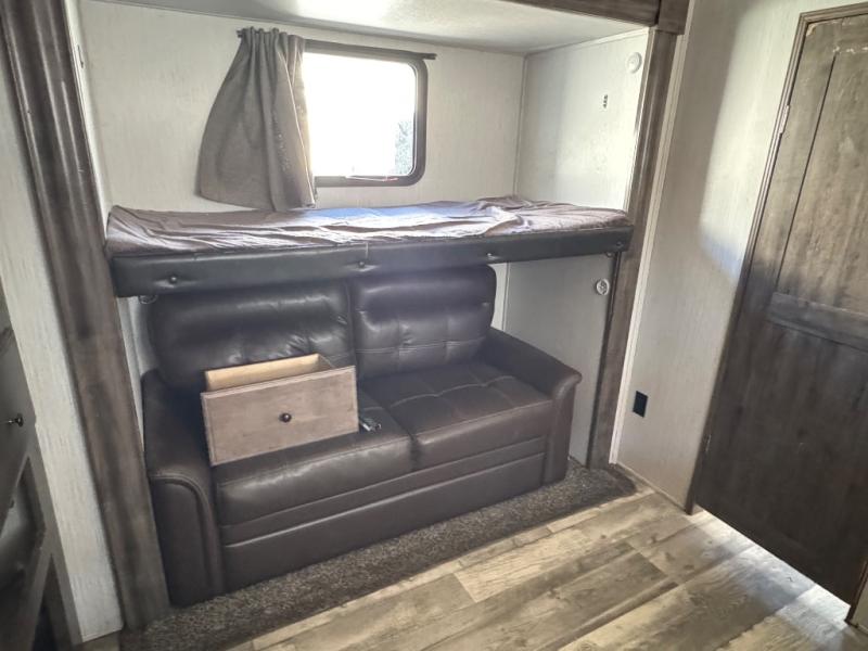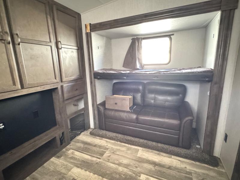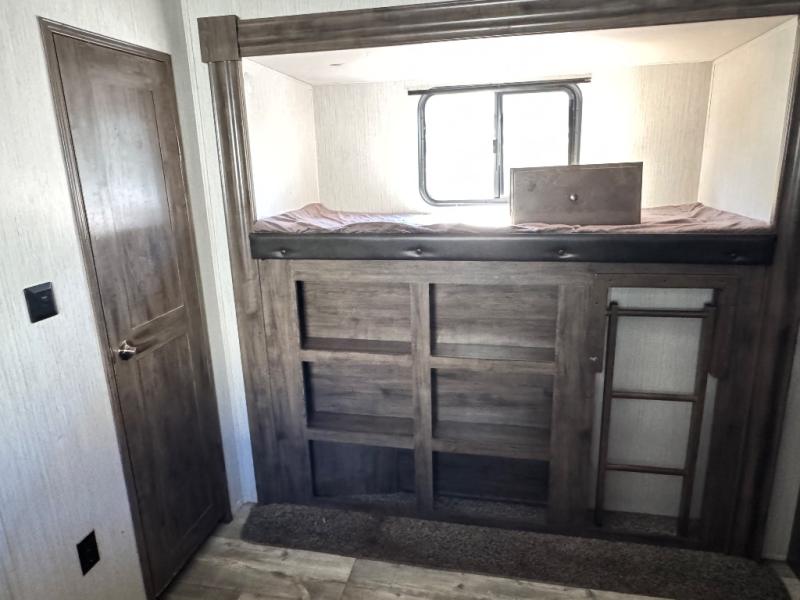 Take the family on the trip of a lifetime with this Sandpiper fifth wheel! From its private bunkhouse suite in the back to its private master bedroom in the front, you will have plenty of space to bring along family and friends as you tour historic sites all across the country. The two entry doors give you convenient access into this unit so that you can load up your luggage and camping gear quite easily, and the kitchen island will come in handy as you prepare dinner each evening.