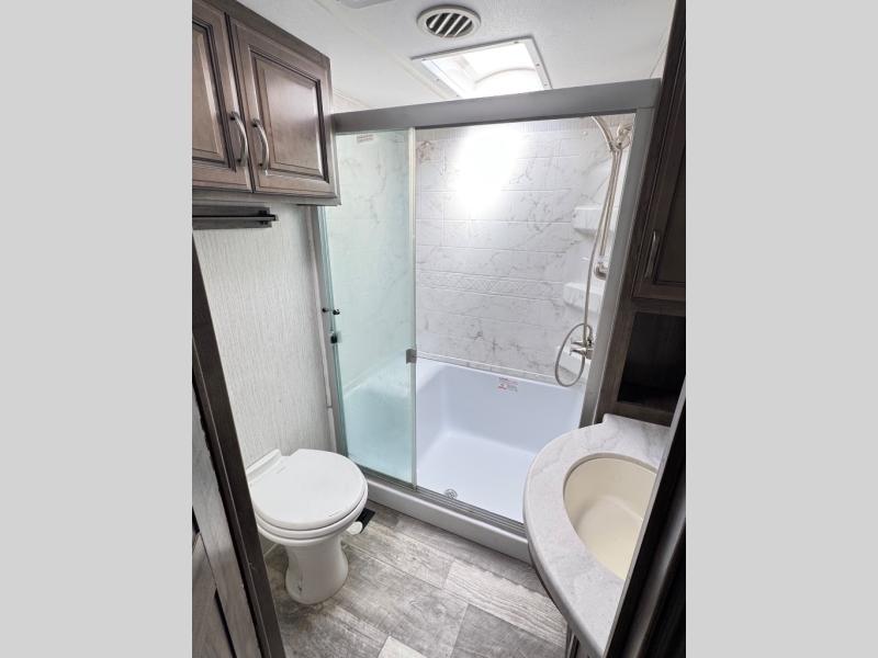 The professional details, outstanding quality, and elegant decor that have been incorporated into each of the Sandpiper fifth wheels by Forest River will absolutely amaze you! Extra large picture windows have been installed throughout the interior so that you can feel connected to the beautiful outdoor scenery from anywhere inside the Sandpiper, and the recessed residential LED lighting will shine brightly and efficiently to illuminate the interior once the day's light has faded. The docking station makes for an easy winterization and the hydraulic front jacks makes it easy to set up once you have arrived at your destination!