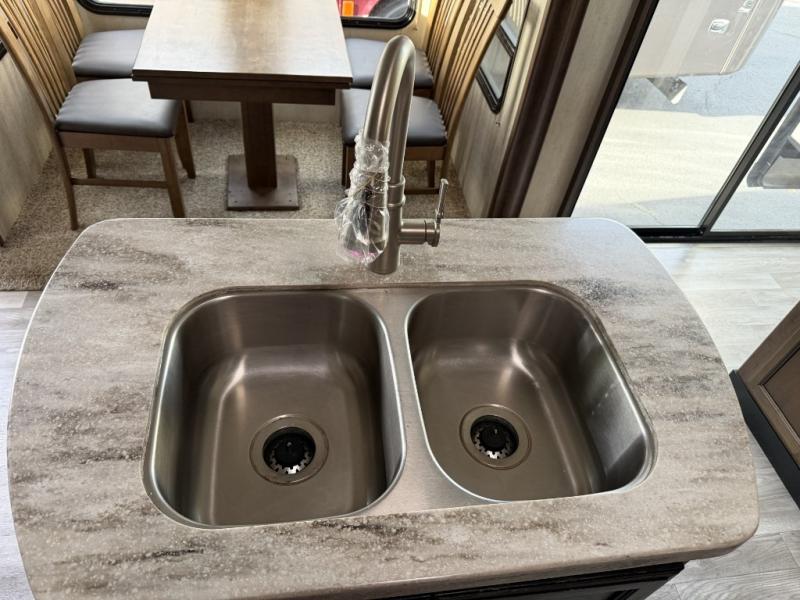 With any Sierra Destination Trailers by Forest River you will feel right at home with many residential features. The Sierra Destination Signature Package includes stainless steel kitchen appliances, including a 22 cu.ft. refrigerator, wood plank pattern linoleum, plus a ceiling fan in the living room as well as a 15K BTU A/C to keep you cool throughout the summer. You'll enjoy recessed residential LED lighting to keep every room light and open, and the extra large picture windows throughout will allow the fresh mountain air in. These models also include all the appliances and systems to make your destination that much easier, including a full coach water filtration system, a 10 gal. DSI water heater, an interior thermostat for heating and cooling, plus washer/dryer hookups on select models! The Sierra Destination Trailers are the one for you, now you just need to choose your destination!