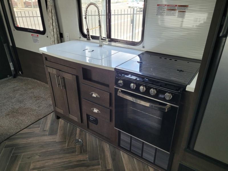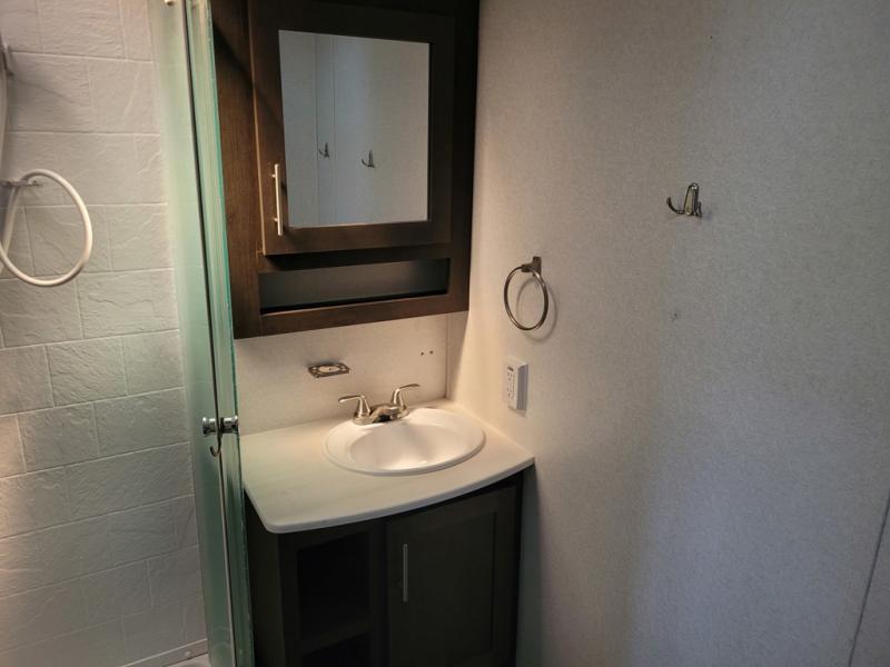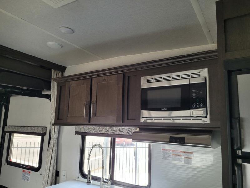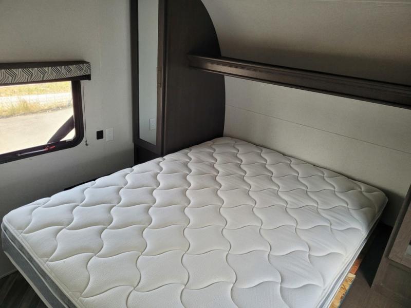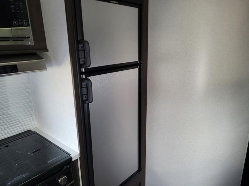 Are you looking for a toy hauler that can haul your dirt bikes but also give you comfortable features that you can enjoy while you're away from home? Look no further than this unit that features 13' 9" of cargo space and your own private bedroom with a queen bed and wardrobes for your clothes. Your riding buddies can crash on the electric bed or convert the electric pass through dinette for more sleeping space. You can prepare dinner just like you do at home on the three burner range or make something quick in the microwave oven so you can get back outside to ride some more!