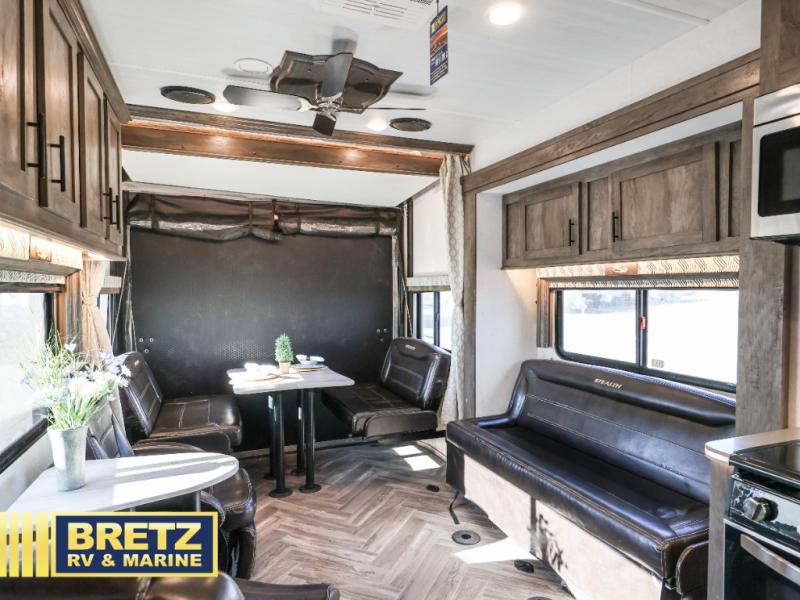 Forest River has constructed the Stealth to be a unit that is ready for anything. With its "off-road approved" chassis and conveniently-added fuel station, the Stealth will ensure that every weekend getaway will be a memorable one. Each evening as you're camping out by the fire, you will appreciate the electric awning with LED lights for its ability to provide the perfect atmosphere as you visit together outside, and when the cool evening air become too much to handle, you can confidently head indoors to find warmth coming from the 30,000 BTU Furnace.