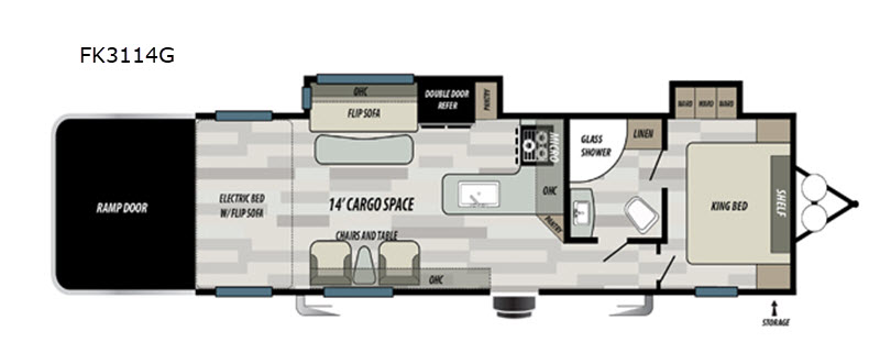 Ultimate Toy Hauler Experience: The Stealth M3114G is perfect for adrenaline junkies who want to bring their toys along for the ride. With a spacious 14-foot garage area, you’ll have plenty of room for ATVs, motorcycles, kayaks, or other outdoor gear. The rear ramp door makes loading and unloading a breeze, so you can spend less time setting up and more time playing.