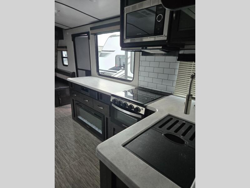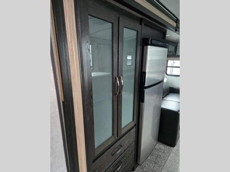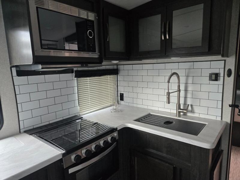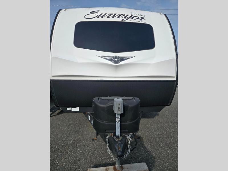 For any camping trip you will want a Forest River Surveyor travel trailer. These models are lightweight and easy to tow, plus you will find that inside there is superior craftsmanship throughout. Along the interior there is a barreled ceiling which adds more headroom in each model and stainless steel appliances for an added at home feature. The designer Carefree flooring is stylish and easy to clean, plus there is a Furrion Bluetooth stereo for you to crank up the tunes. Along the exterior you will enjoy convenient features like the outside shower, the electric awning with LED lights, and the pet friendly utility hook with food bowls too. It is now easier than ever to choose a travel trailer that is ideal for you! What are you waiting for? Come select your Surveyor travel trailer today!
