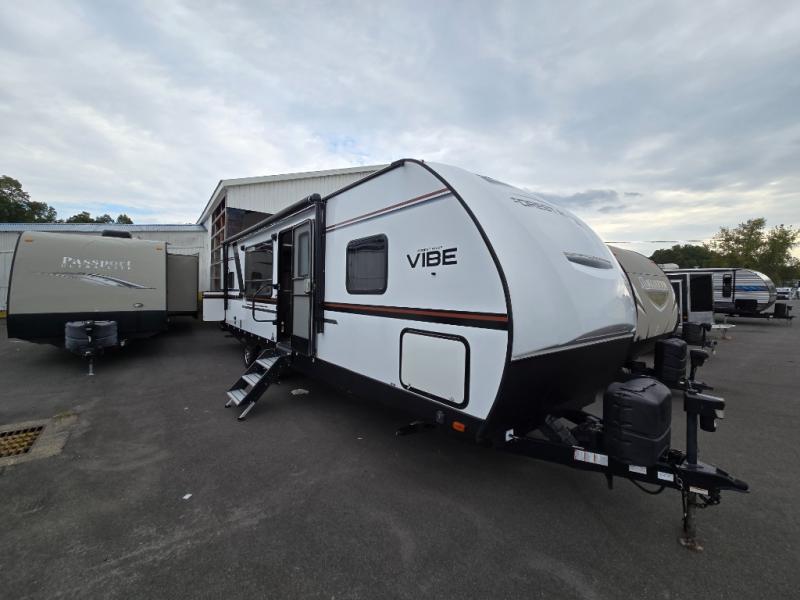 With each Forest River Vibe travel trailer in the Midwest Region, you will experience a feature-packed trailer including Hyper Lyte construction, vacuum-bonded walls, and aluminum framed laminated floors including an enclosed underbelly, a 3/4 front fiberglass cap with LED light, and a spread axle system. On the inside, you will find a stainless steel chef's appliance package, solid surface countertops, a Denver pillow top mattress, a high efficiency A/C cooling system with larger duct work, and much more! Choose a Vibe today, and start having fun tomorrow!