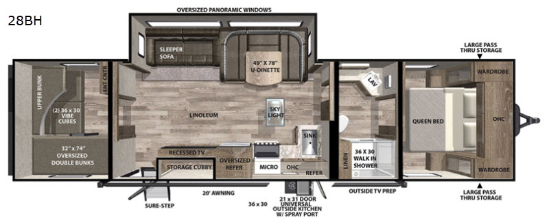 Forest River Vibe travel trailer 28BH highlights: