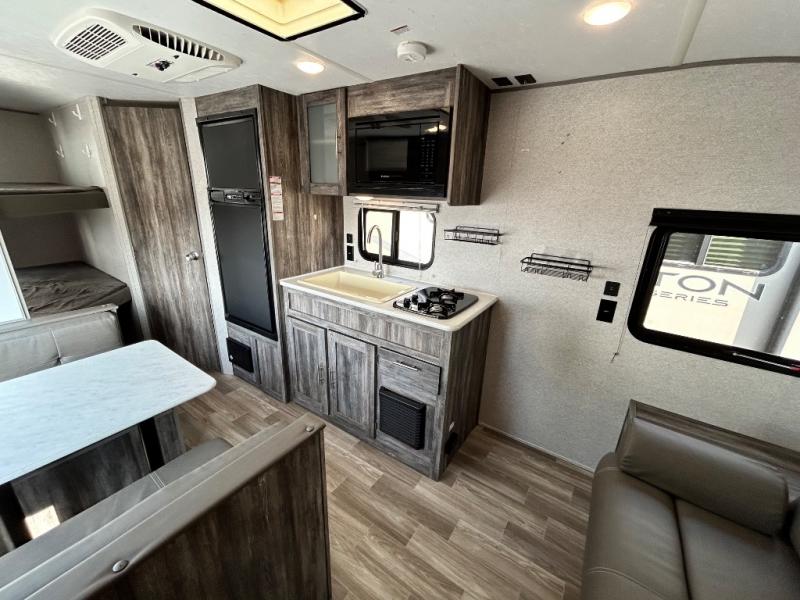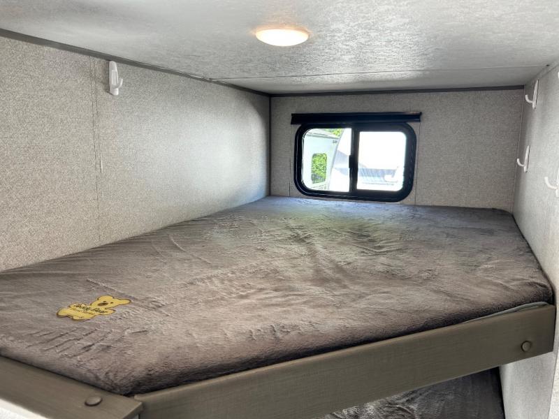 It's time for you to take a break from the hustle and bustle of life, and what better way to do so than to camp in this Wildwood FSX travel trailer! Your kiddos are sure to love their own space with the rear double-size bunks. If you want to enjoy every minute being out in the great outdoors, then head to the outdoor kitchen prep station where you can get your best meals whipped up in no time and still get a tan. Don't leave behind any of your camping accessories because you will have plenty of room to store them in either the exterior pass-through storage or in the overhead cabinets and the shelves. When you're ready to hit the sack, head to the front of this unit and pull down the Murphy bed to enjoy a good night's rest!