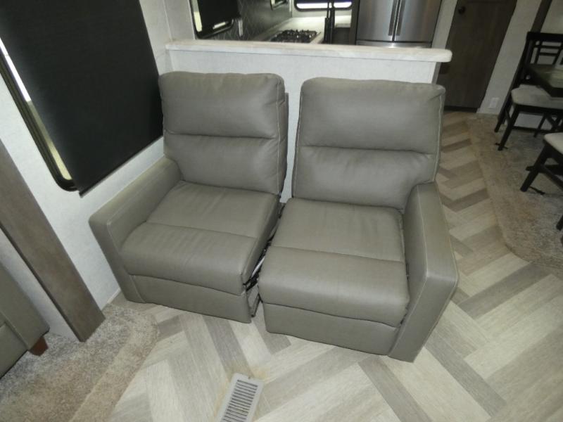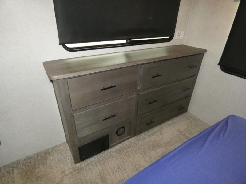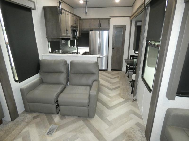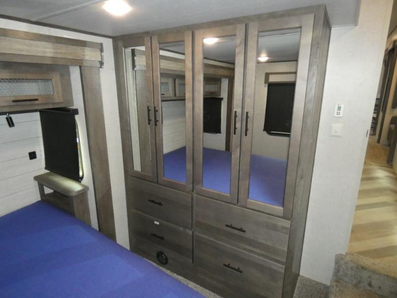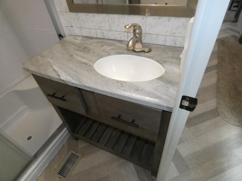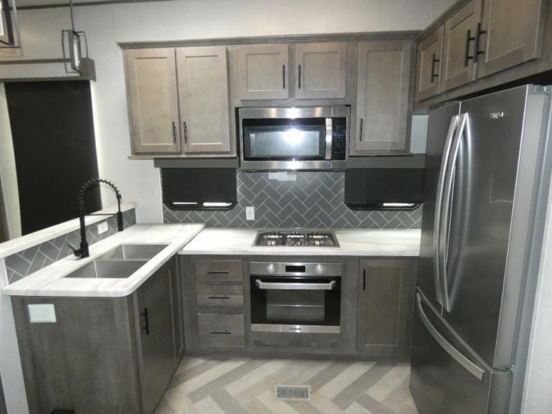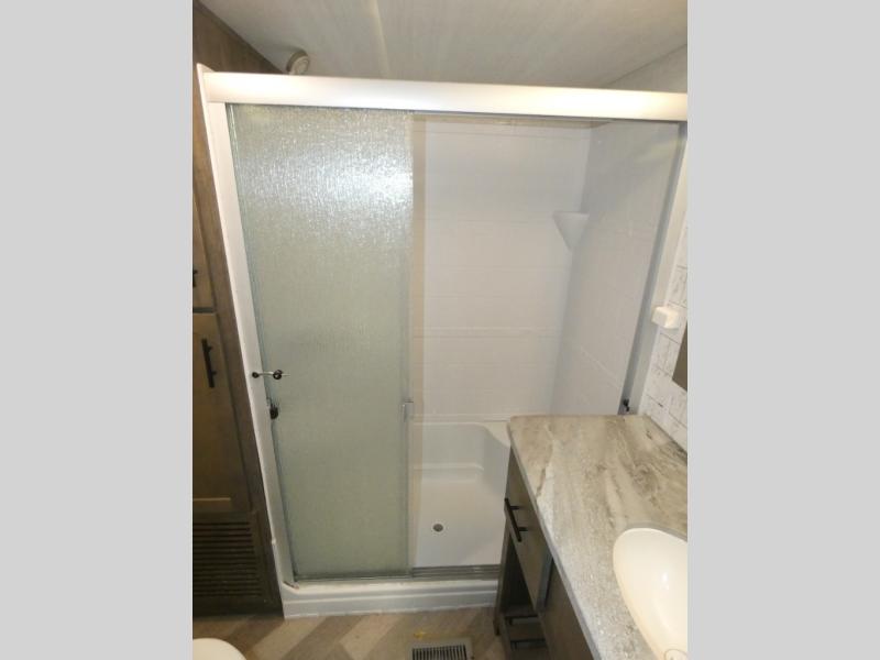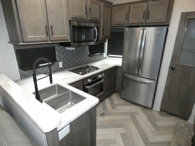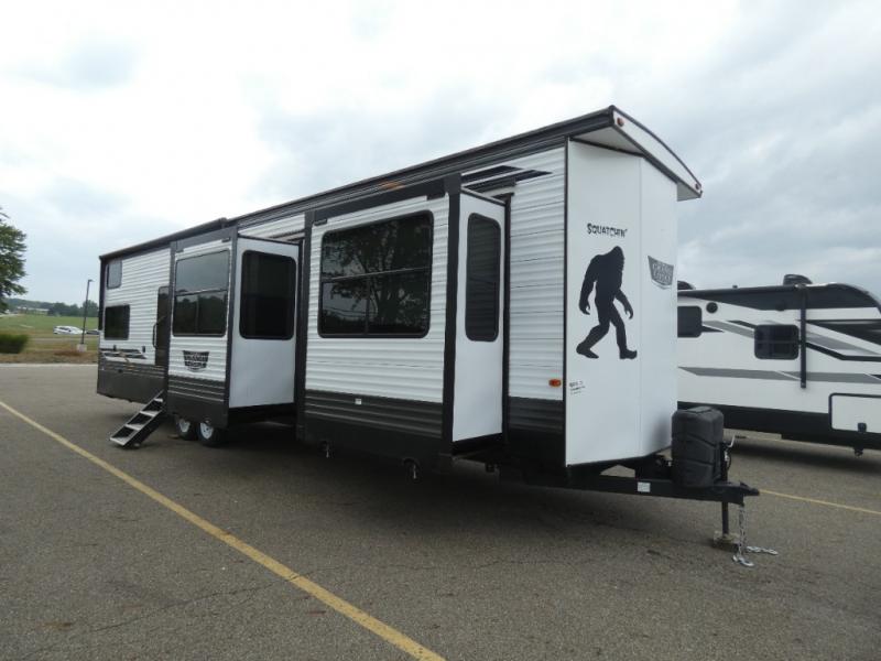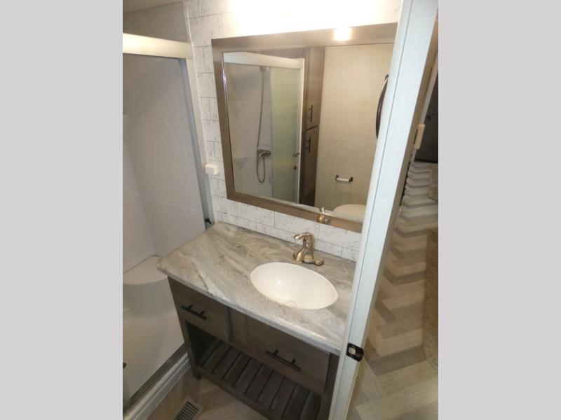 Functionality plus at-home comforts describe the Wildwood Grand Lodge destination trailer from Forest River. You will love all of the new features and upgrades, like the extra-large windows that bring the view of your surroundings right inside and the taller ceilings which provide a spacious and airy feel. You will also appreciate the 80" extra-wide sofa, the stainless steel appliances, and the residential designer backsplash for all of your extended-stay needs. With the Wildwood Grand Lodge, you truly get a home away from home with all of the conveniences that make travel fun. Even the housekeeping will be fun with the central vacuum that has been included!