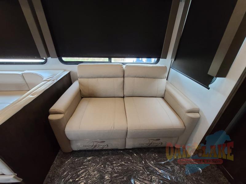 Not all fifth wheels are alike, and once you own this one, you will understand! The rear entry into the second full bathroom allows the kids to enter and exit quickly to get back outside to the fun. They will also be able to shower then enter their private bunkhouse with two bunks, a trundle bed and a twin bed plus two slide outs offering lots of floor space to play. You will have your own oasis on the opposite side in the master bedroom with a custom king bed slide, a full wall wardrobe including shelves and a prepped space for an optional washer/dryer, and more. The other full bathroom is only steps away from the main entrance and living area. You might even use the entry bench to put on your shoes before heading outside to make a meal on the outdoor kitchen/bar or grab something from the Texas-sized pass-through compartment. And the inside kitchen offers even more amenities, and the fourth slide provides a U-dinette and tri-fold sofa.