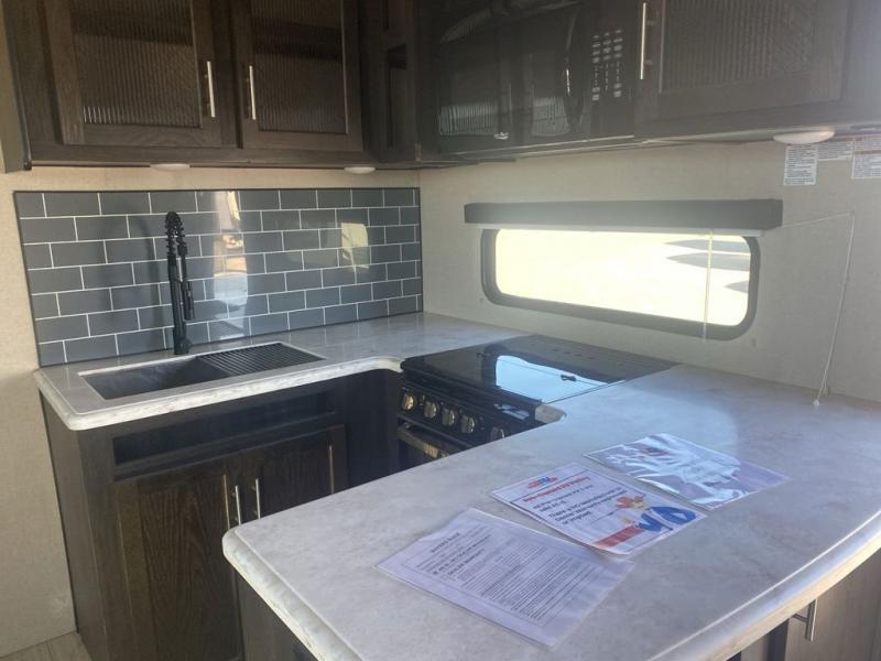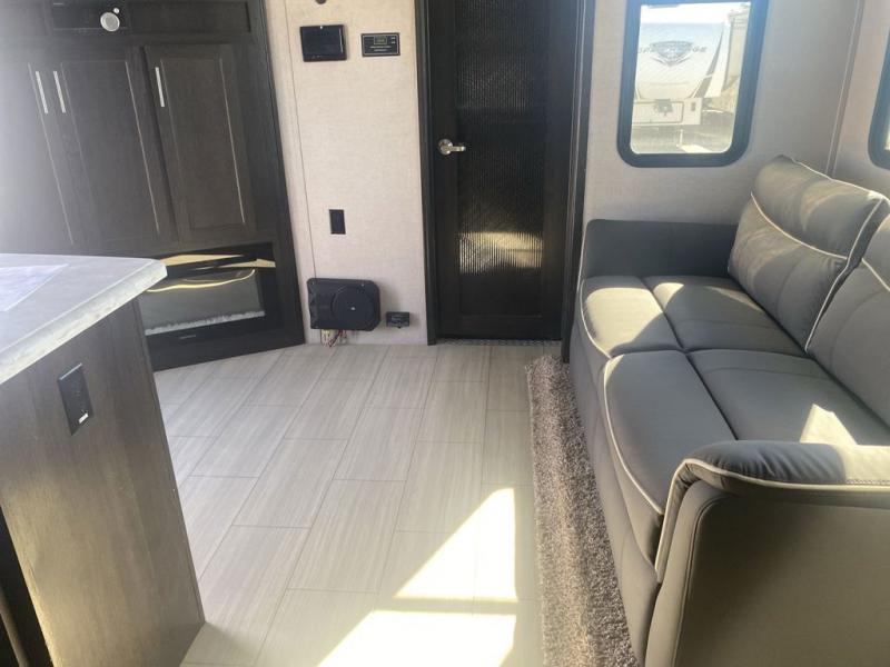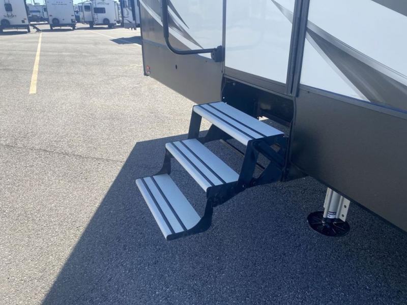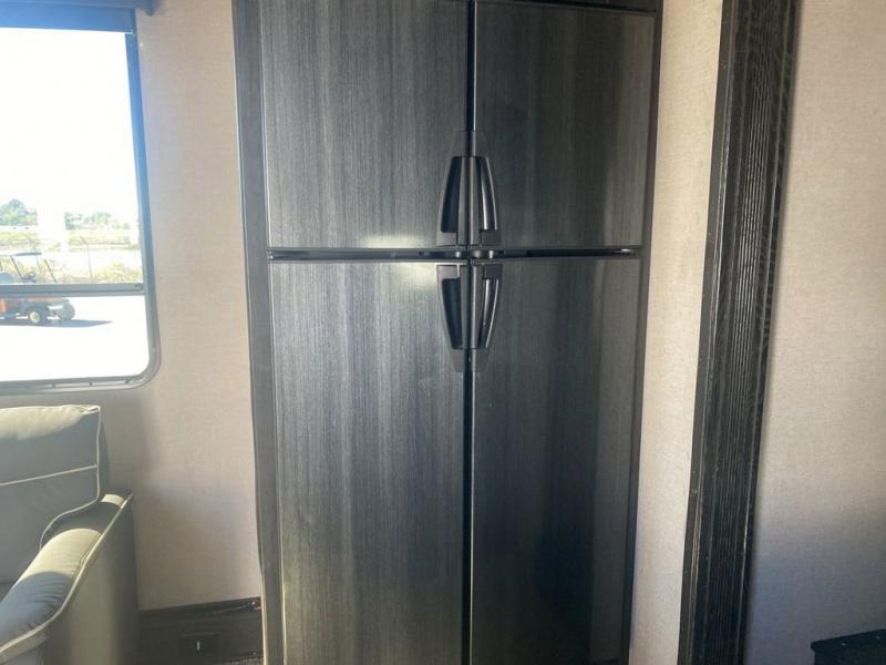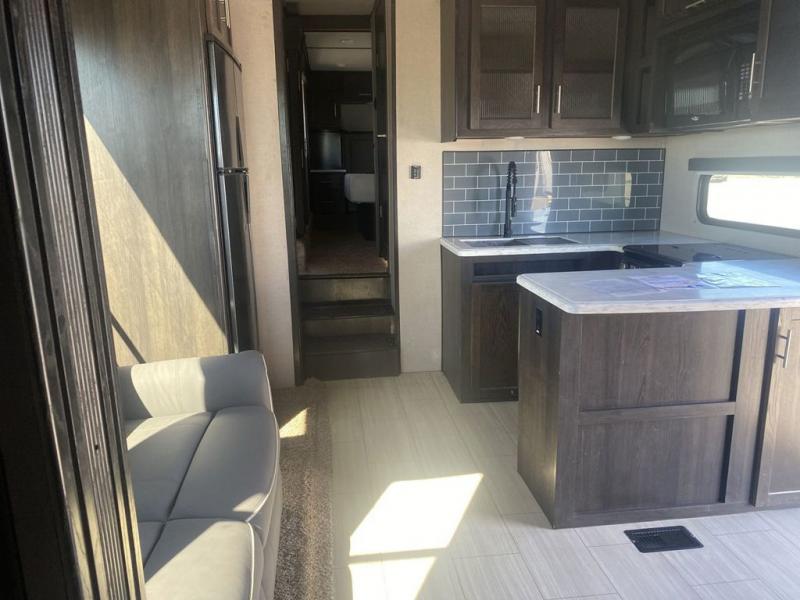 This XLR Thunderbolt toy hauler is the one that you will want by your side as you take the family out to the lake for the weekend! With its capacity to sleep nine people, this unit proves to be a huge asset right from the start, and the loft will be a fun area for the kids to sleep in at night. The two slides are what help you have enough space to enjoy your time spent indoors, and the chef will appreciate having a couple smiling faces sitting at the breakfast bar while they prepare the meal on the three-burner cooktop.