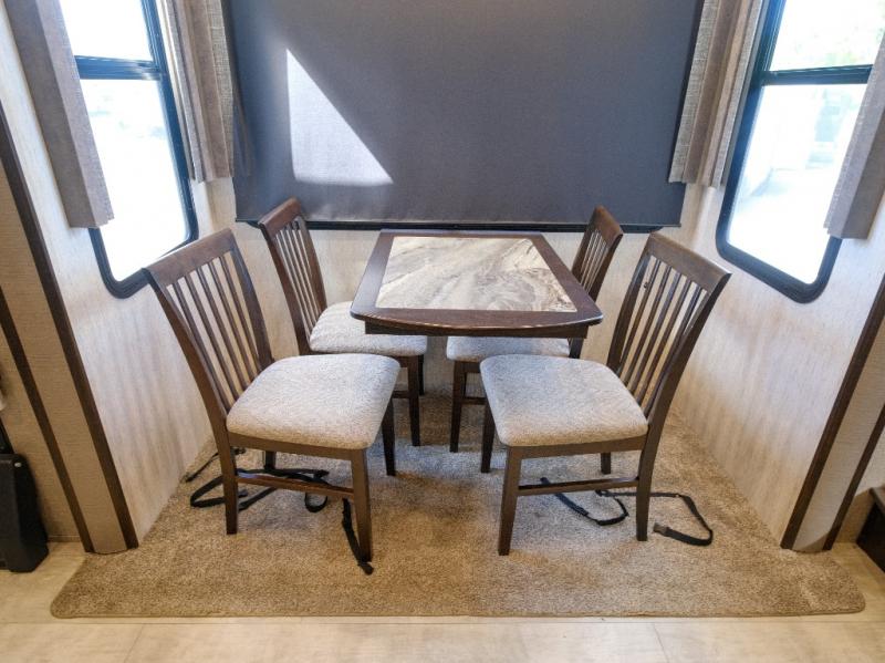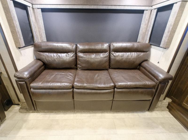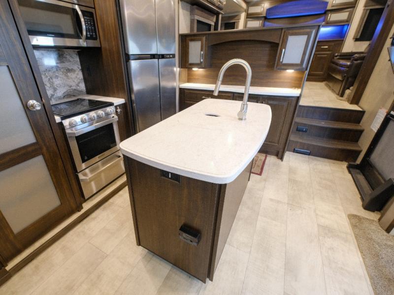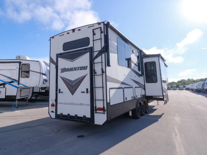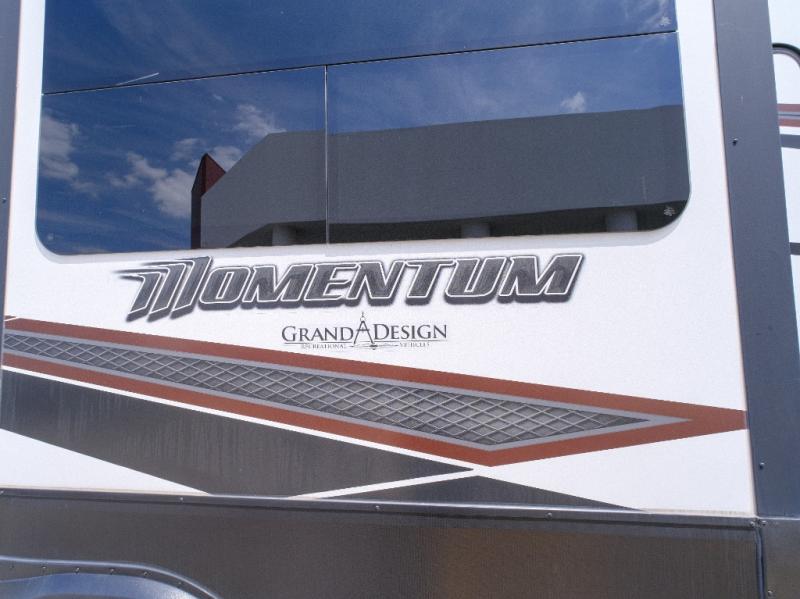 With any Momentum toy hauler fifth wheel you will enjoy extraordinary living with extreme playtime with the Weather-Tek insulation for four seasons of protection, and a fully enclosed fuel pump station to keep the fun going the whole time. The Tuff-Ply garage flooring is gas and oil resistant and includes 2,500 lb. rated flush-mount tie-downs to keep your toys secure while moving down the road. The interior includes a sofa with headrest and removable swivel table, a convection microwave, a central vacuum system with tools and a dust pan, and a satellite/solar roof access channel to mention a few highlights. Any Grand Design Momentum allows you to keep your active lifestyle no matter where you decide to stay!