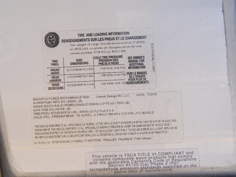 Used 2020 Grand Design Momentum 376TH Toy Hauler Fifth Wheel