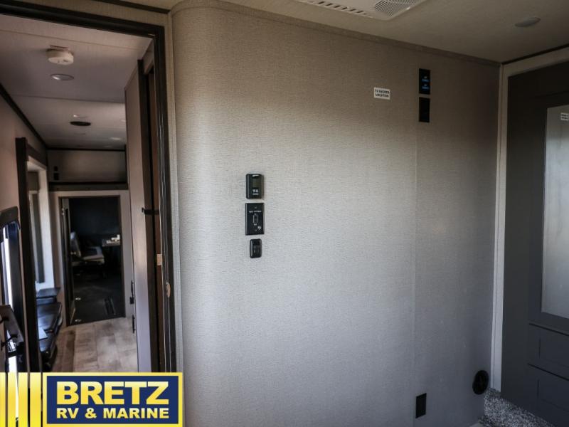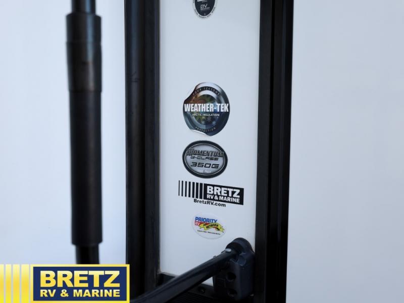 Are you looking for adventure and fun? The Momentum G-Class toy hauler by Grand Design will help you find it! You can explore during any season you choose with the Insulation Package that includes a heated and enclosed underbelly with suspended tanks, a high-capacity furnace, a moisture barrier floor enclosure, and cabinet-mounted heat ducts. Each model includes a 30-gallon fuel station with an interior and exterior gauge, a dovetail rear rend, and 2,500-LB tie-downs anchored into the chassis. Throughout the Momentum G-Class interior, you'll enjoy many comfortable features like large panoramic windows, a shower skylight, USB chargers in the bedroom, and residential cabinetry.