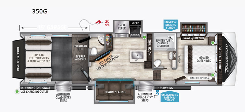 Grand Design Momentum G-Class toy hauler 350G highlights:
