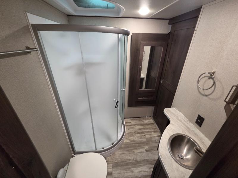 Each Reflection fifth wheel by Grand Design offers luxury along with easy towing to your favorite destinations with the aerodynamic front cap including Max Turn Radius. The Universal All-In-One docking station, LP Quick Connect, and One-Touch electric awning with LED lighting makes setting up and packing up easy for those weekenders or full-timers that like to move around. Inside, you will find the bedroom is complete with a residential queen mattress, a king size wardrobe, oversized underbed storage, and much more! The Arctic 4-Seasons Protection package allows you to camp anywhere and anytime of the year with its heated and enclosed underbelly, EZ winterization, dual attic vents, plus so much more. Come choose your favorite model today!