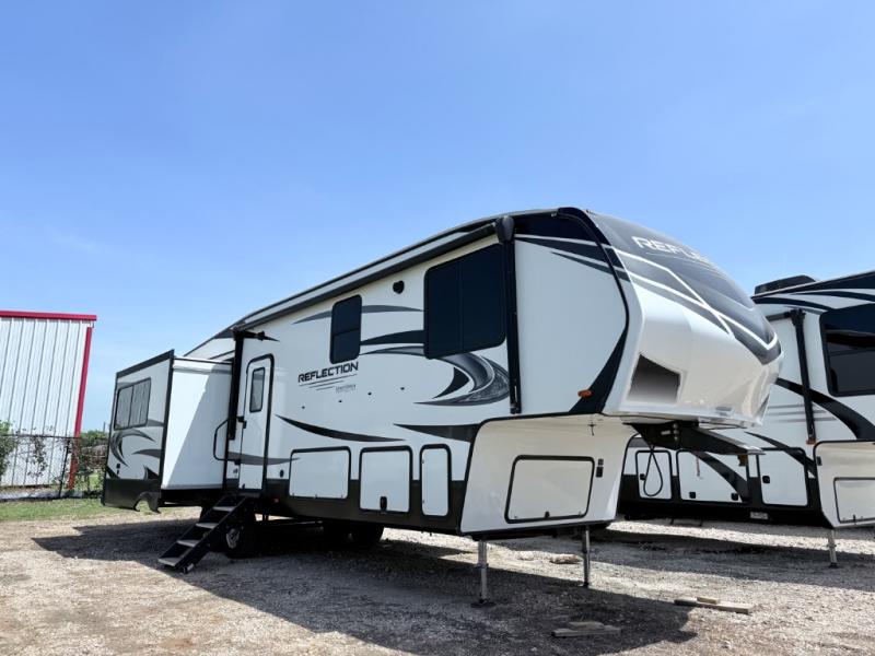 Each Reflection fifth wheel by Grand Design offers luxury along with easy towing to your favorite destinations with the aerodynamic front cap including Max Turn Radius. The Universal All-In-One docking station, LP Quick Connect, and One-Touch electric awning with LED lighting makes setting up and packing up easy for those weekenders or full-timers that like to move around. Inside, you will find the bedroom is complete with a residential queen mattress, a king size wardrobe, oversized underbed storage, and much more! The Arctic 4-Seasons Protection package allows you to camp anywhere and anytime of the year with its heated and enclosed underbelly, EZ winterization, dual attic vents, plus so much more. Come choose your favorite model today!