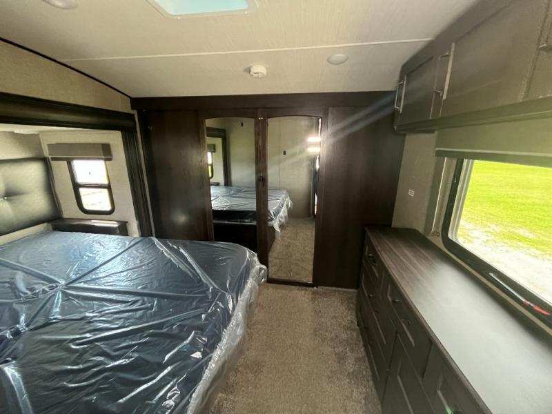 Each Reflection fifth wheel by Grand Design offers luxury along with easy towing to your favorite destinations with the aerodynamic front cap including Max Turn Radius. The Universal All-In-One docking station, LP Quick Connect, and One-Touch electric awning with LED lighting makes setting up and packing up easy for those weekenders or full-timers that like to move around. Inside, you will find the bedroom is complete with a residential queen mattress, a king size wardrobe, oversized underbed storage, and much more! The Arctic 4-Seasons Protection package allows you to camp anywhere and anytime of the year with its heated and enclosed underbelly, EZ winterization, dual attic vents, plus so much more. Come choose your favorite model today!