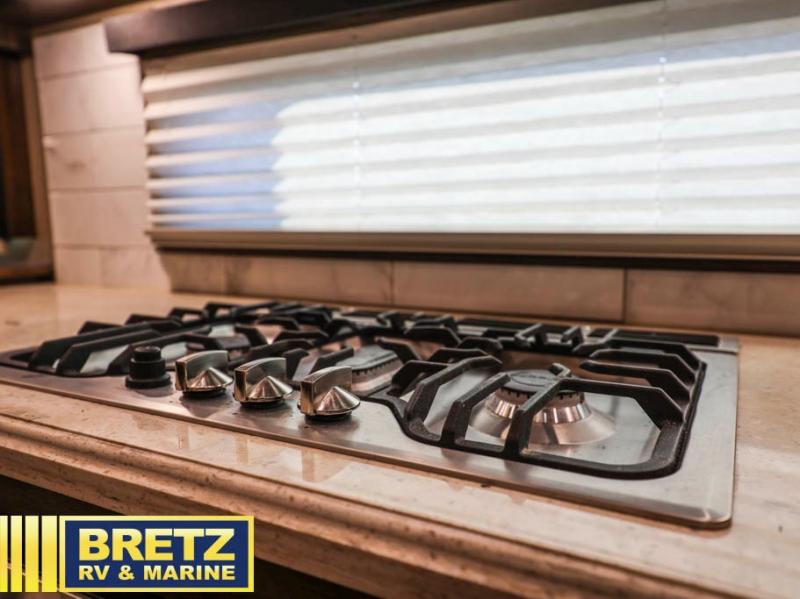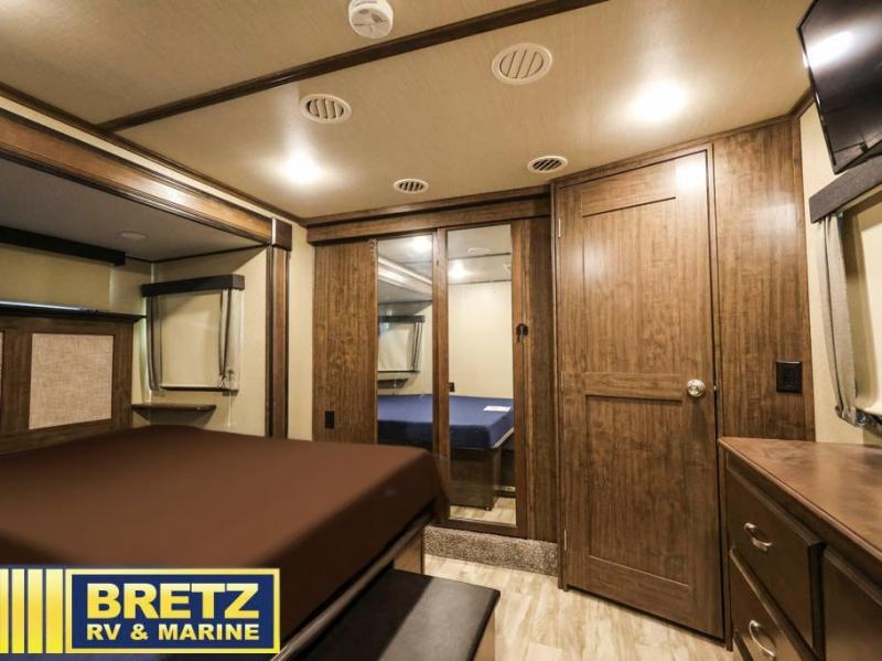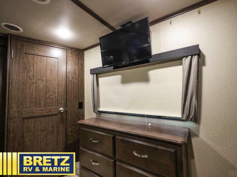 Just imagine working at your own desk while looking out the window at the mountains or the lake in this Solitude fifth wheel. Now you can start thinking about how you will enjoy a front master bedroom with a flip-top dresser, pull-out ottoman, and a TV. When you aren't exploring outside, you might decide to cook your meals using the professional-grade stainless steel cooktop, built-in oven, or convection microwave. There is serving space on the kitchen island, and you can store leftovers in the pantry or in the stainless steel 18 cu. ft. four-door refrigerator. You might even like to choose a few options such as adding a washer and dryer, a dishwasher, a king-size bed, or even a pull-out kitchen outside. Come see how this Solitude allows you to work and play at any destination.