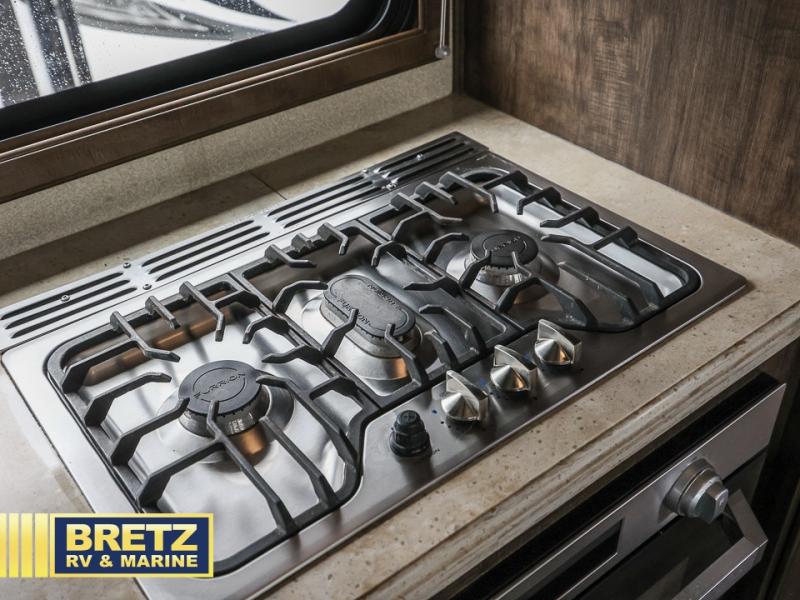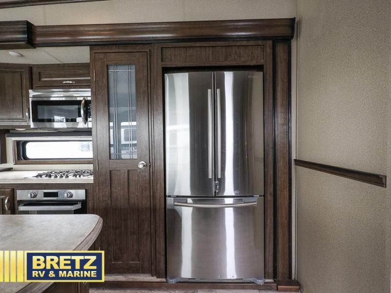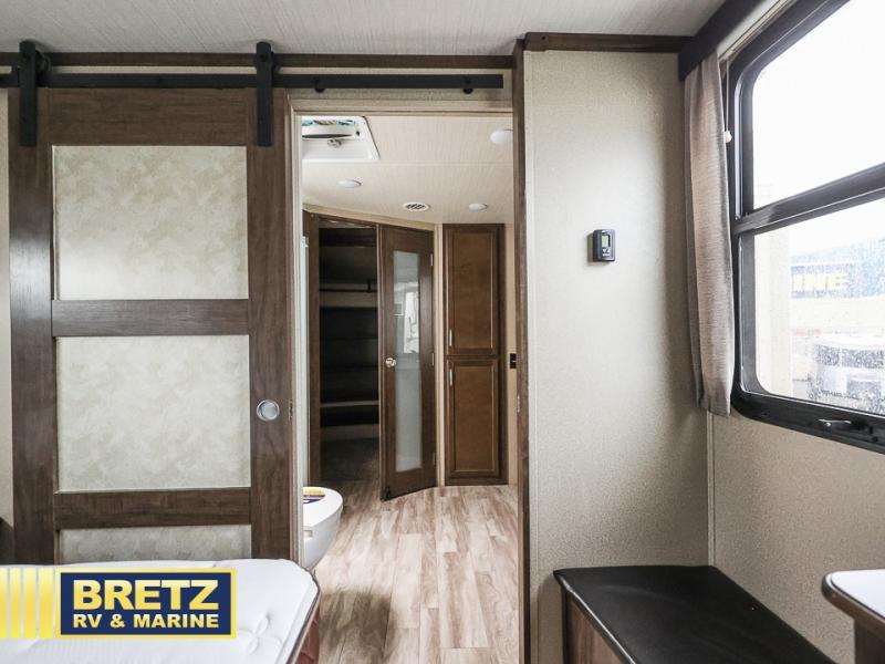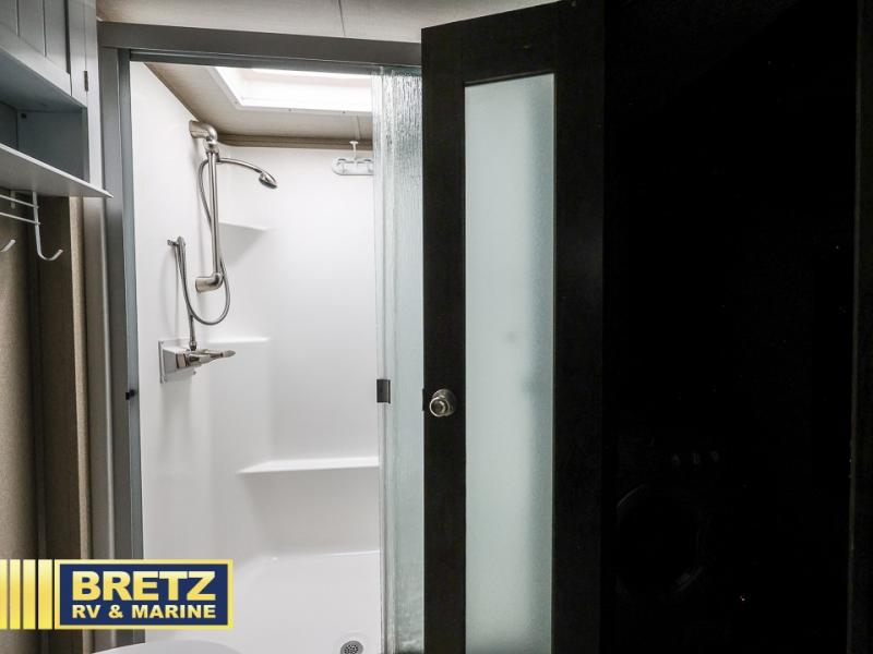 Imagine the convenience of having a full master bathroom with dual sinks, an additional half bath, plus storage everywhere you look around this Solitude fifth wheel. From the two closets next to the entry door, the large walk-in wardrobe in the master bath, the under-bed storage, and all the overhead cabinets throughout, you will have plenty of space to invite the grandkids for a week-long stay. Now start thinking about how you will enjoy the walk-through master bedroom with a flip-top dresser, dual benches, and a TV. The cook in the family will surely love making meals in the kitchen on the island. You might even like to choose a few options to make this the perfect full-timer RV!