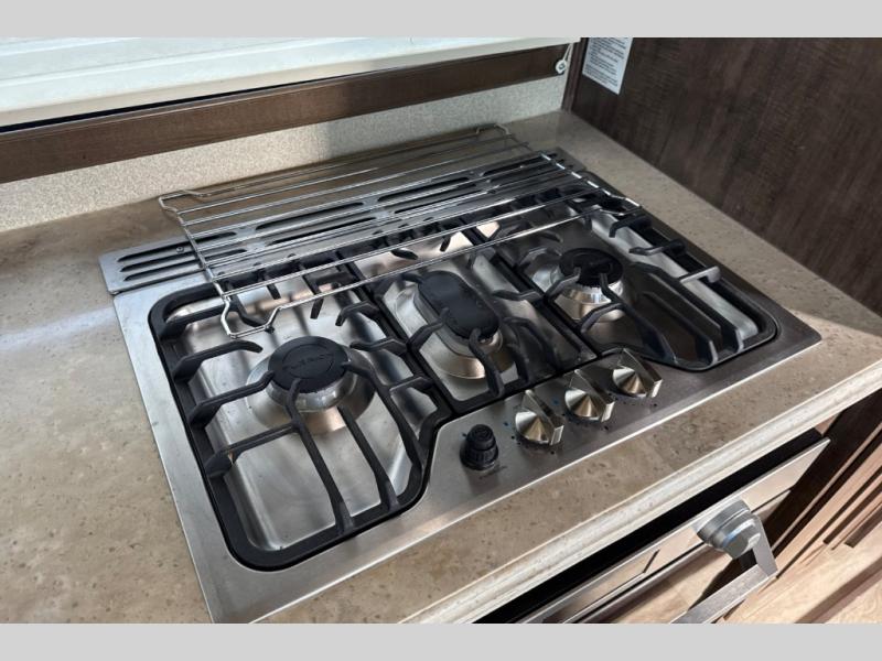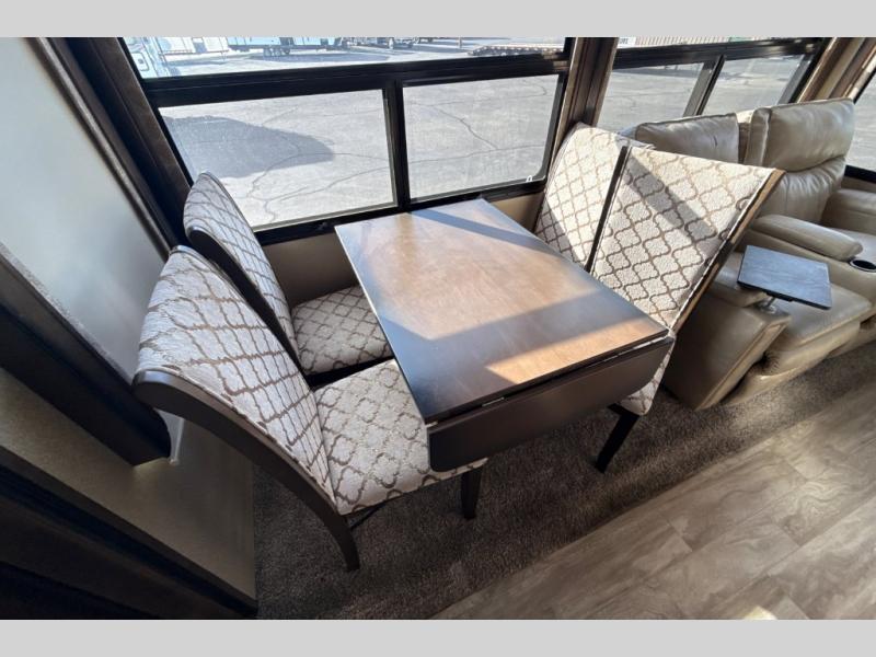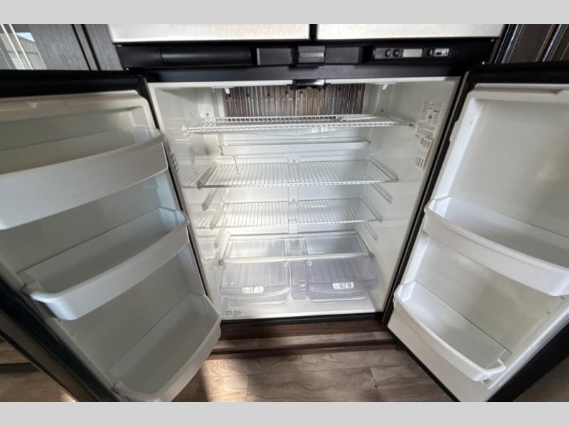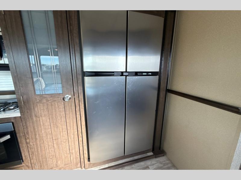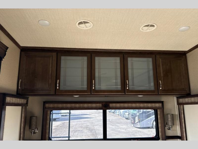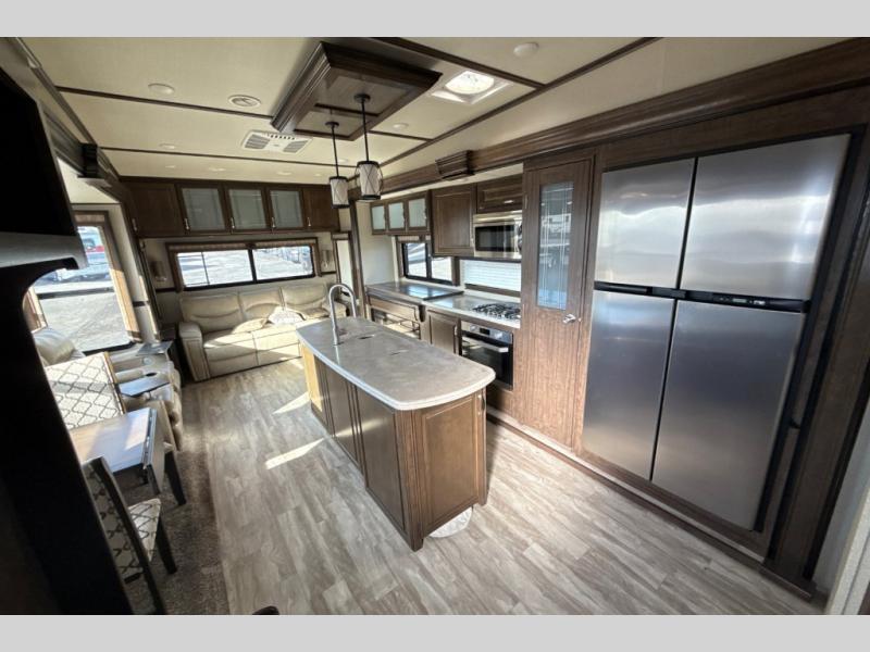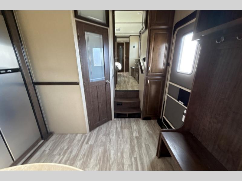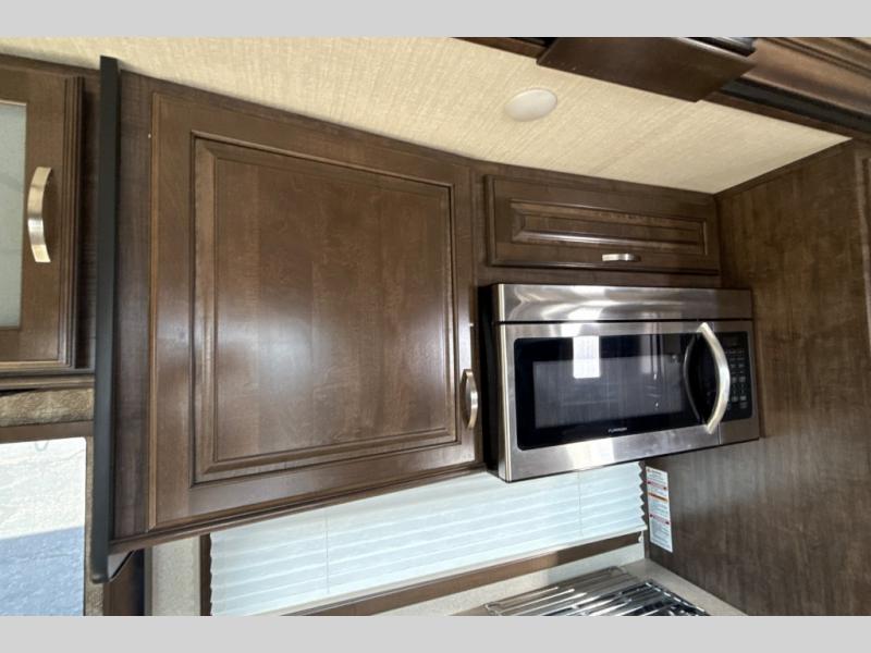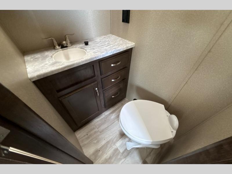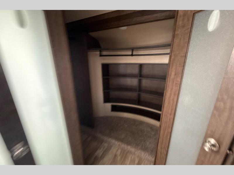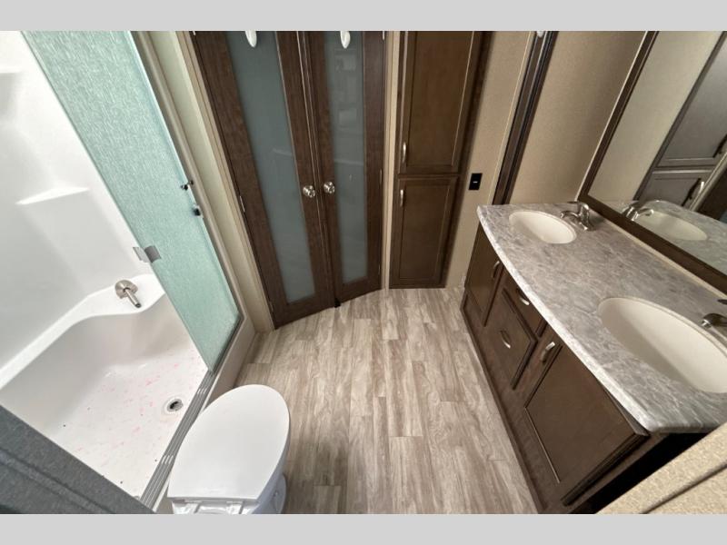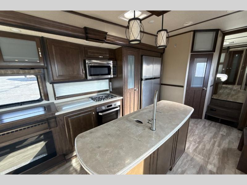 Imagine the convenience of having a full master bathroom with dual sinks, an additional half bath, plus storage everywhere you look around this Solitude fifth wheel. From the two closets next to the entry door, the large walk-in wardrobe in the master bath, the under-bed storage, and all the overhead cabinets throughout, you will have plenty of space to invite the grandkids for a week-long stay. Now start thinking about how you will enjoy the walk-through master bedroom with a flip-top dresser, dual benches, and a TV. The cook in the family will surely love making meals in the kitchen on the island. You might even like to choose a few options to make this the perfect full-timer RV!
